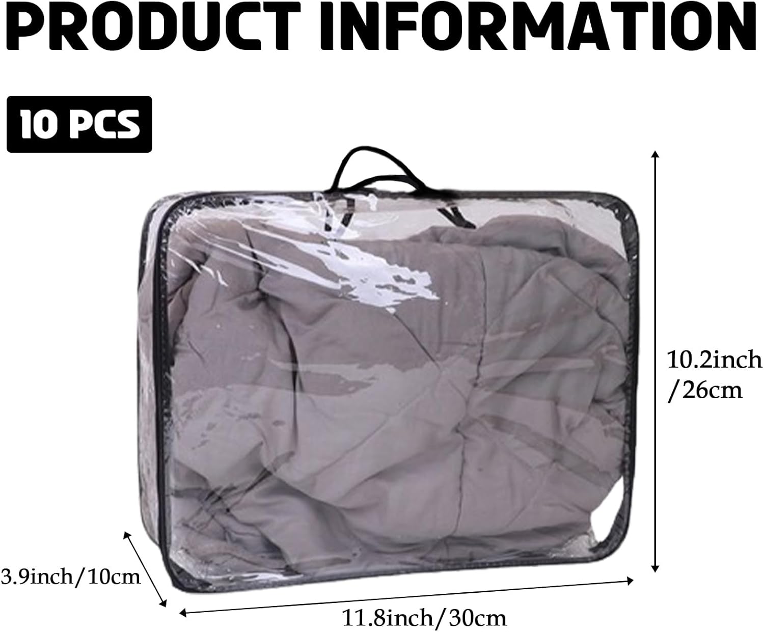 10 Pcs Large Clear Travel Packing Cube, Vinyl Zippered Storage Bags, See-Through PVC Organizer Multipurpose Pouch with Handle for Clothes, Comforter, Bedding (Black, 11.8 x 10.2 x 3.9 Inch)