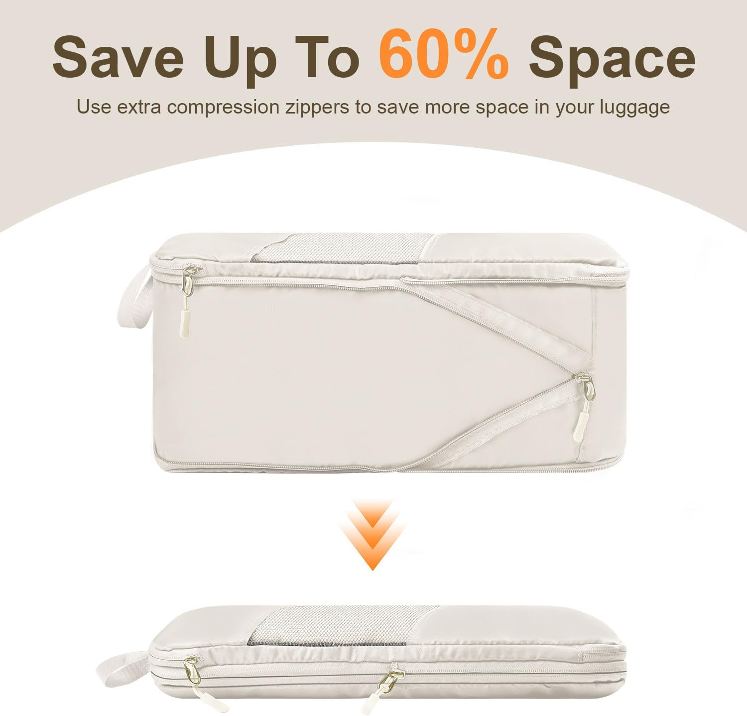 10 Set Compression Packing Cubes for Travel, Suitcase Organizer Bags Set for Travel Accessories, Lightweight Essentials, Beige