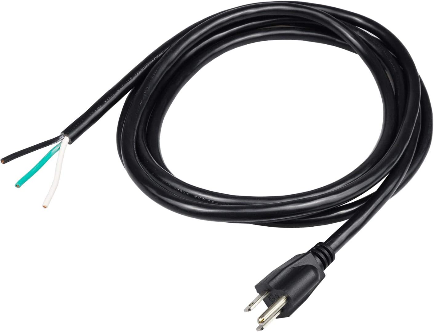VERSATILE CONNECTION: 10-Feet, 3-wire, 14/3 replacement power cord NEMA 5-15P male to bare end ( ONE END ), which has open wiring on the other end for easy connection and custom installations.