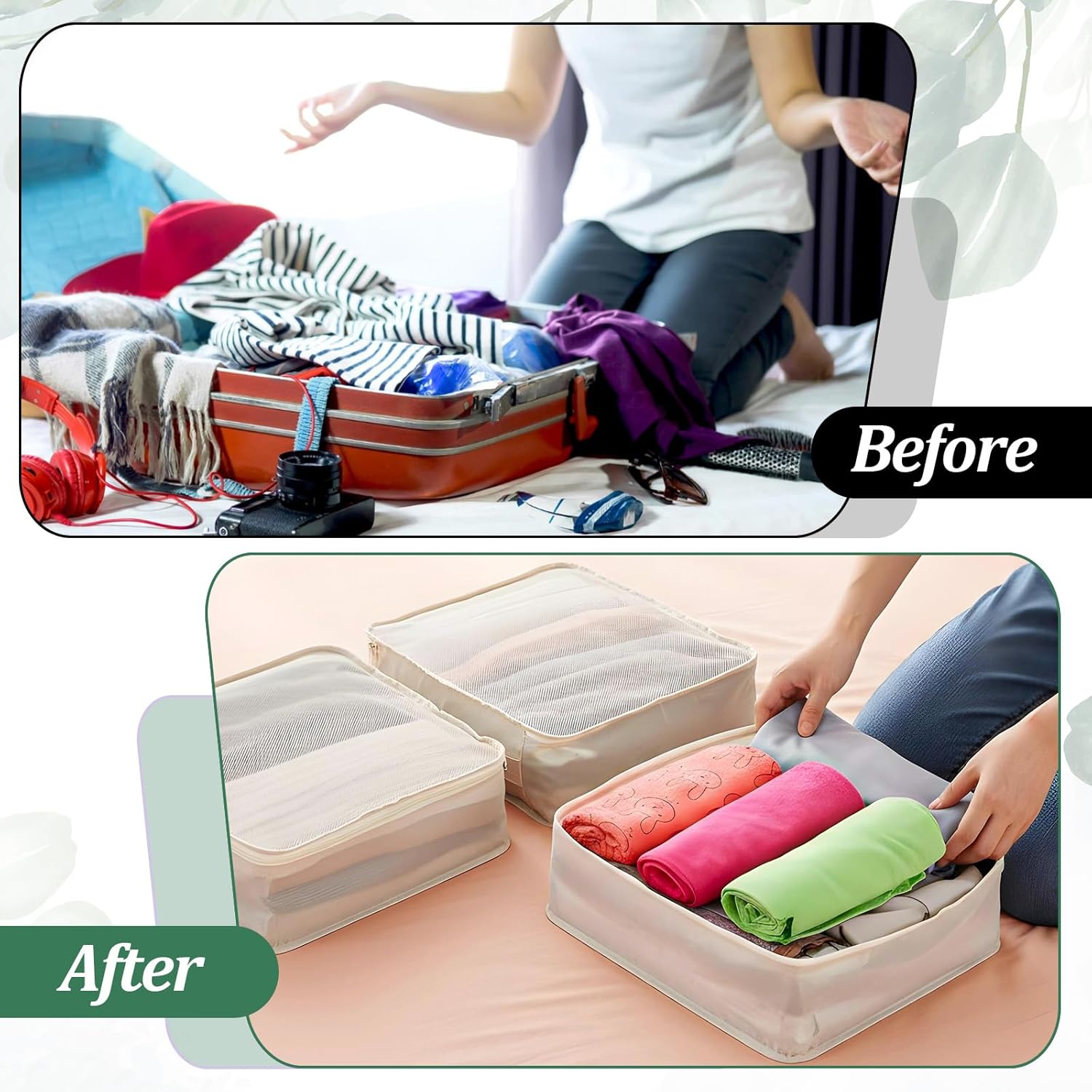 Save Space: Say goodbye to disorganized luggage with our travel packing organizers. The suitcase organizer ensures your belongings are neatly arranged, saving you time and energy. The compression packing cubes help you make the most of your luggage space, allowing you to pack more efficiently and effectively. These suitcase packing cubes are a must-have for any traveler looking to streamline their packing process.