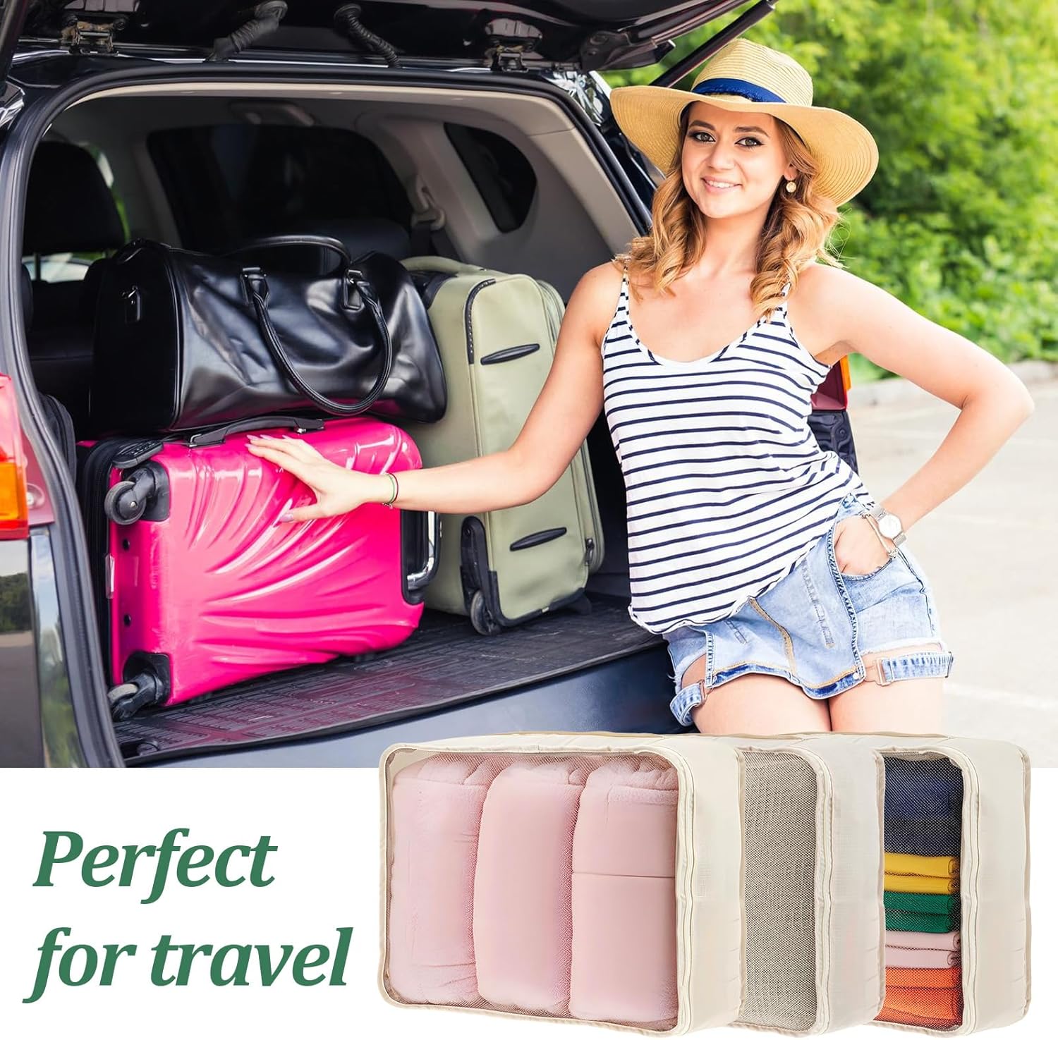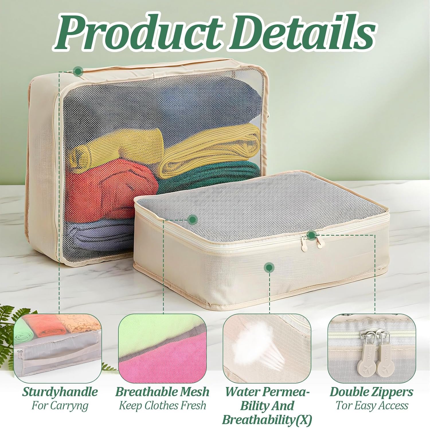 Portable & Lightweight: Our compression packing cubes are designed with portability in mind. The suitcase packing cubes are lightweight and easy to carry, making them ideal for any travel scenario. The luggage cubes are available in a chic khaki color, adding a touch of style to your travel essentials. Whether you’re hiking, camping, or embarking on a business trip, these packing cubes are a convenient choice.