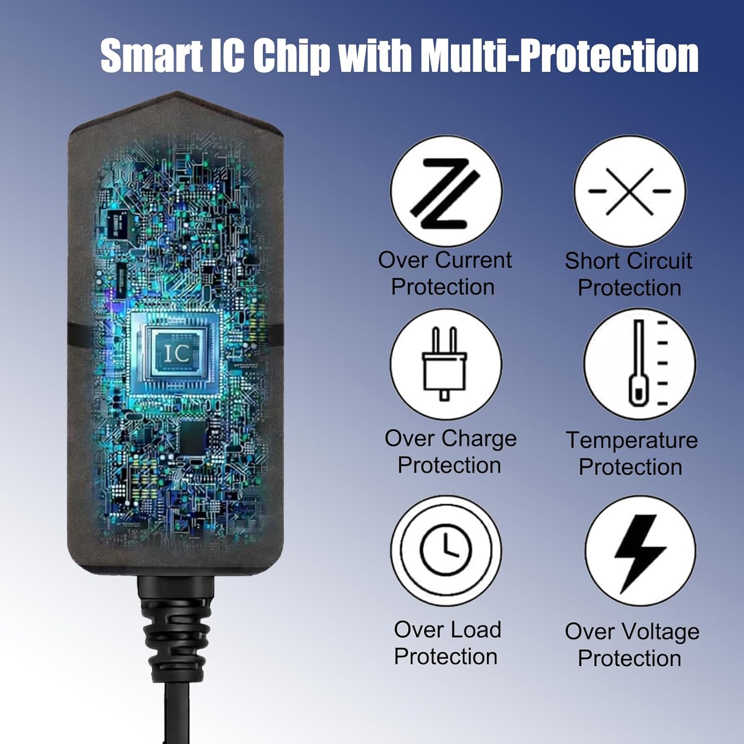 Safe Charging with Full Protection:Built-in protection from overvoltage, short circuit, overcurrent, and overheating.