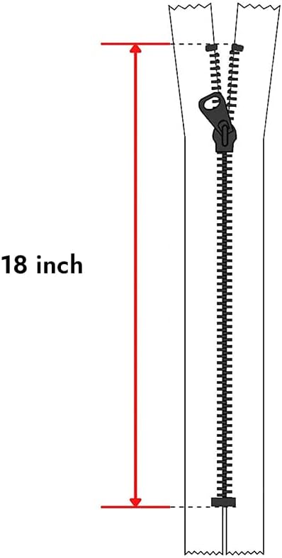SIZE The sewing zipper is accurate in size. Each non-separating zipper is 18 inches in length(457 mm). More specifically, the dimensions are: 18″ L x 3/4″ W, with teeth width #2 (3 mm). 1 zipper in a pack