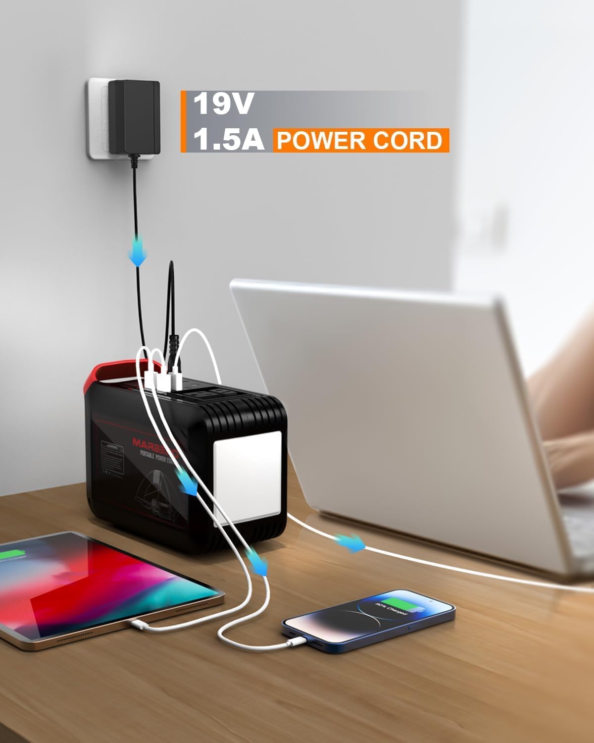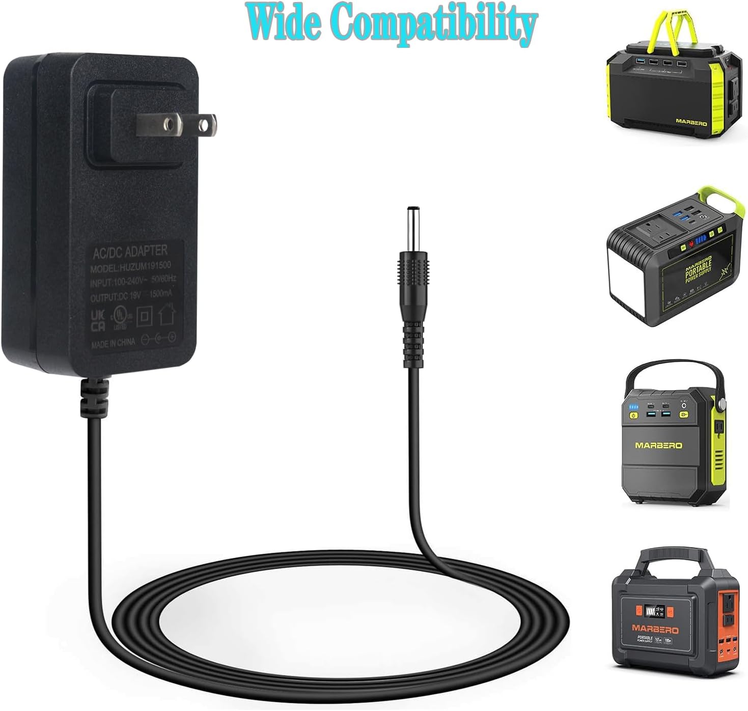 【High Quality】: The portable power supply charger for marbero is made of high temperature resistant and flame retardant PC material which meets ball-pressure test requirements. The wire is wrapped in PVC material with good electrical conductivity and stable transmission.
