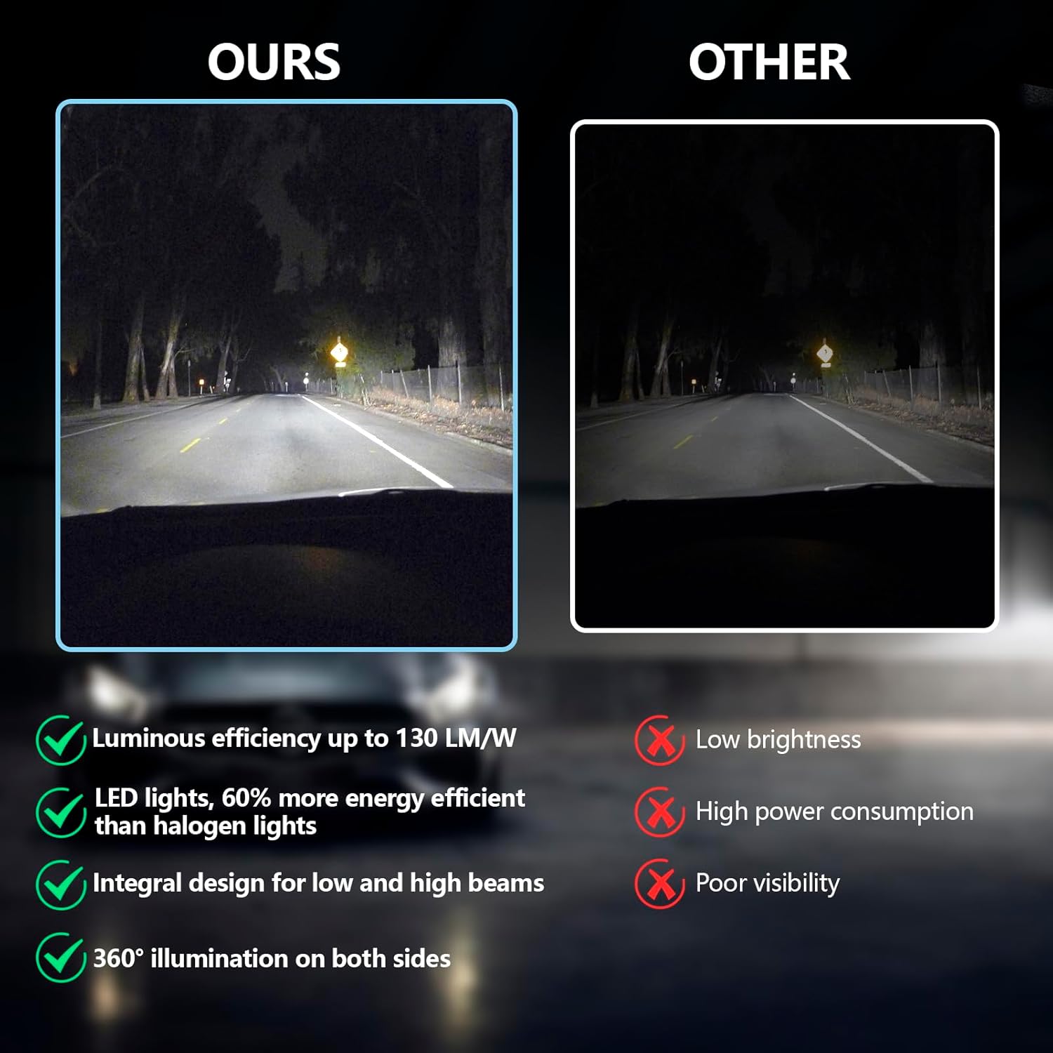 【Ultra High Brightness】: Our 9005 HB3 led headlight bulbs spotlight effect, high brightness, low energy consumption, easy to deal with heavy rain, integrated design makes the field of vision brighter and more spacious, improve the visibility of the road at night,make your driving safer.