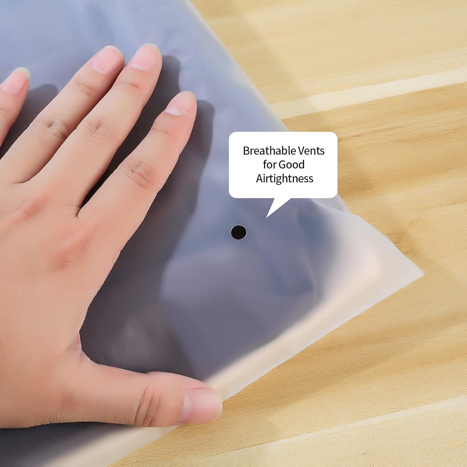 Resealable Zip Design: All travel ziplock bags for clothes uses resealable sturdy zips that once you slide it opens or seals the bag, makes you easier access and to close again. Each ziplock storage bags has a vent hole design to make items more breathable.