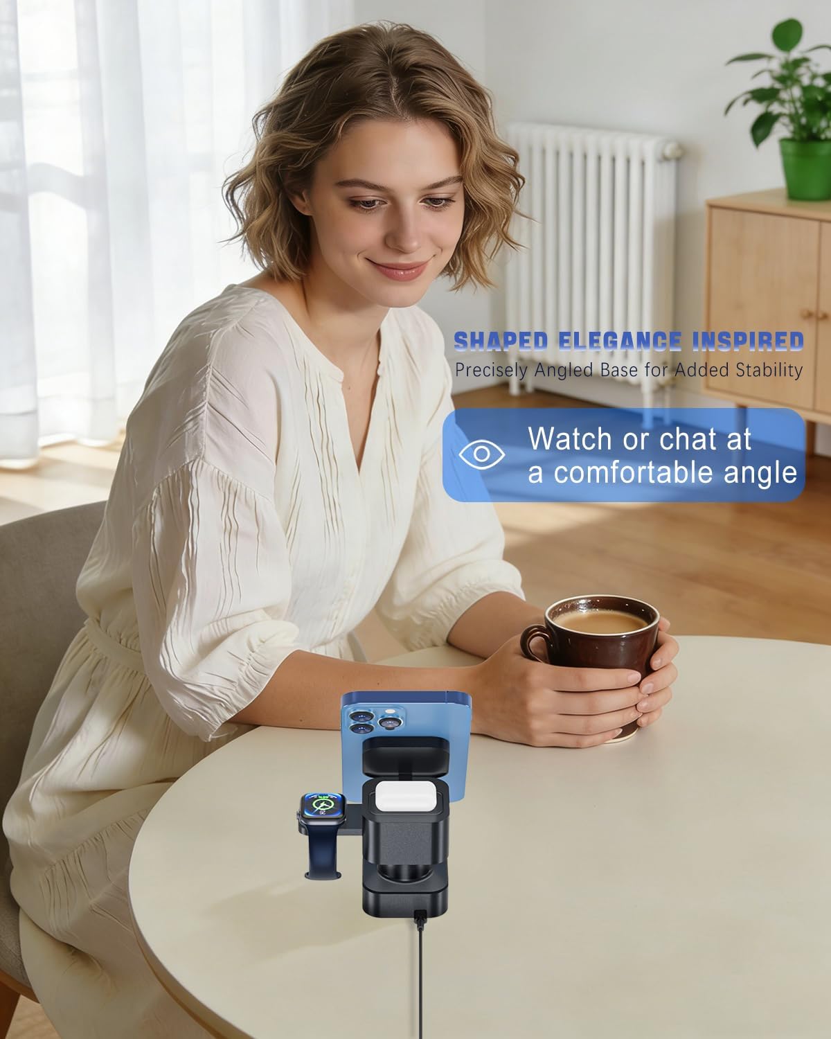 Wide Compatibility & Premium Bundle:Supports charging through most phone cases up to 4mm thick (for optimal MagSafe charging speeds, use a MagSafe-compatible case). Bundle includes: 4-in-1 charging dock, 1-meter USB-C cable, and user guide. Enjoy 1-year warranty and 24/7 customer support—the perfect gift for home, work, or travel.