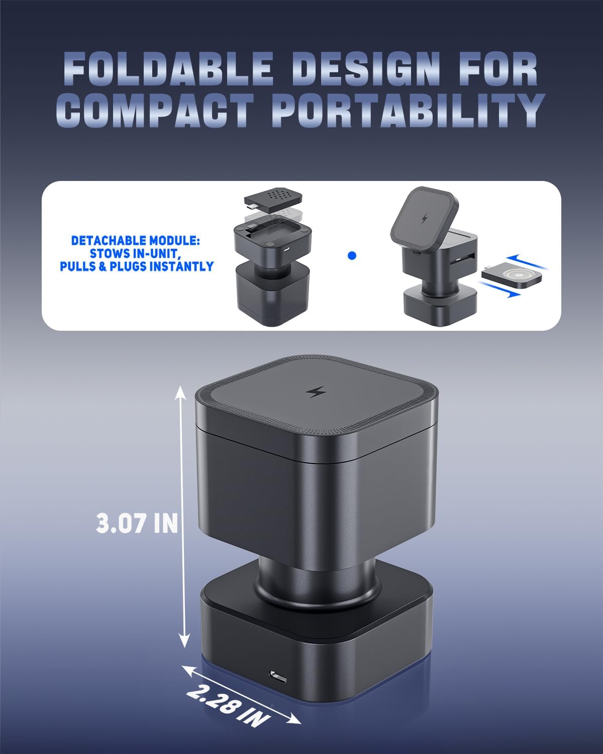 15W Fast Magnetic Charging & 360° Adjustable Viewing: Equipped with an upgraded N52 strong magnet array, the charger ensures instant, secure alignment for your iPhone, enabling up to 15W fast wireless charging. The phone charging area rotates 360°, allowing you to set the perfect horizontal or vertical viewing angle for watching videos, making calls, or using FaceTime while charging—all without interrupting power delivery.