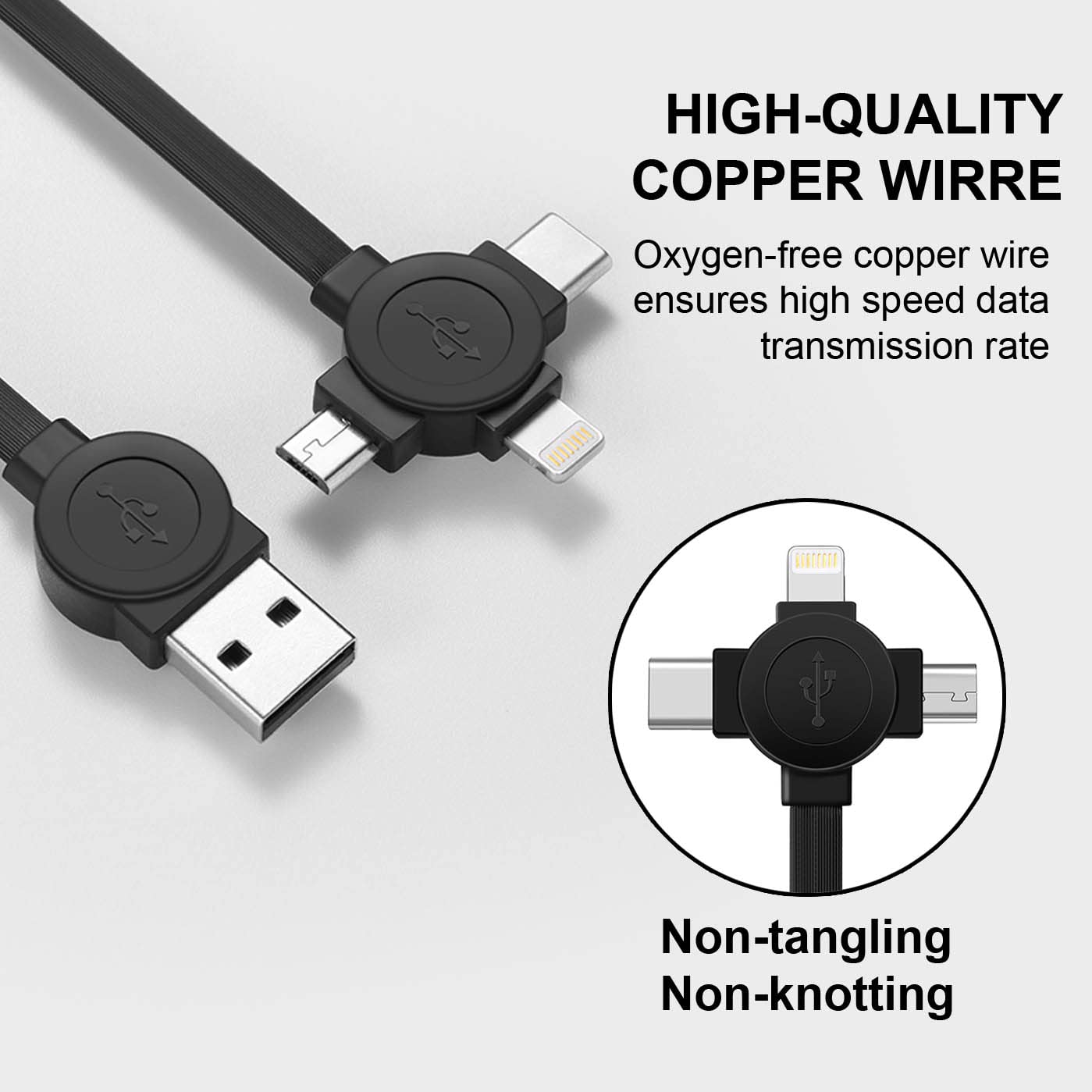 [Convenient and easy to use]:Ideal Length 3.3 ft/1M is optimal to use in home, office, car, traveling & more. Built-in and Lightning Port and Type C and Micro USB combo allows the cable to perform 3-in-1 functionality.Retractable 3 in 1 Cable is very easy to fold and place in your handbag, laptop bag, pocket etc.