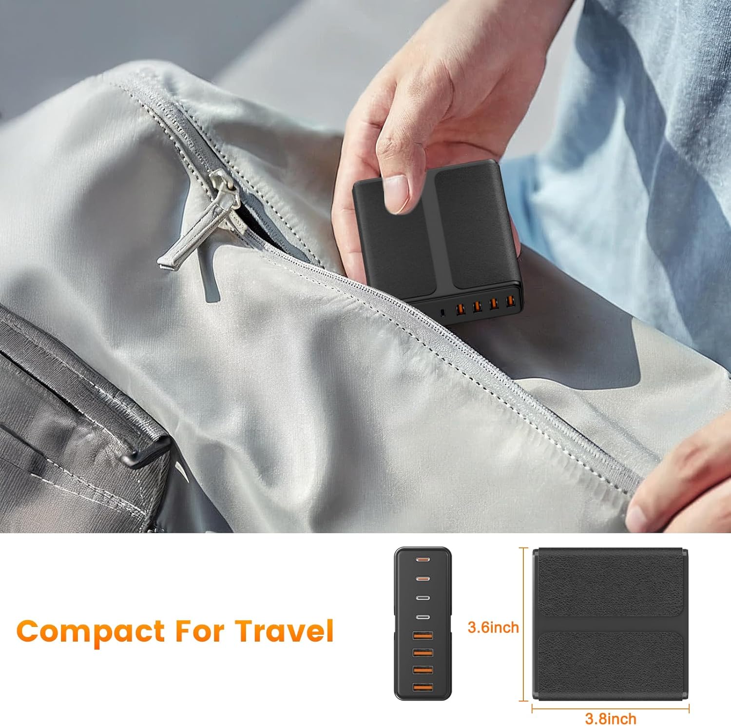【Portable USB C Charging Station】Multiport USB C Charger Station perfectly charges multiple devices for home, office and travel. Small size saves you 50% space and fits easily into pockets, handbags, travel cases. The 5ft/1.5m power cord for this multiple fast charger station can be extended to the desktop, bedside, counter, nightstand, service desk, etc.