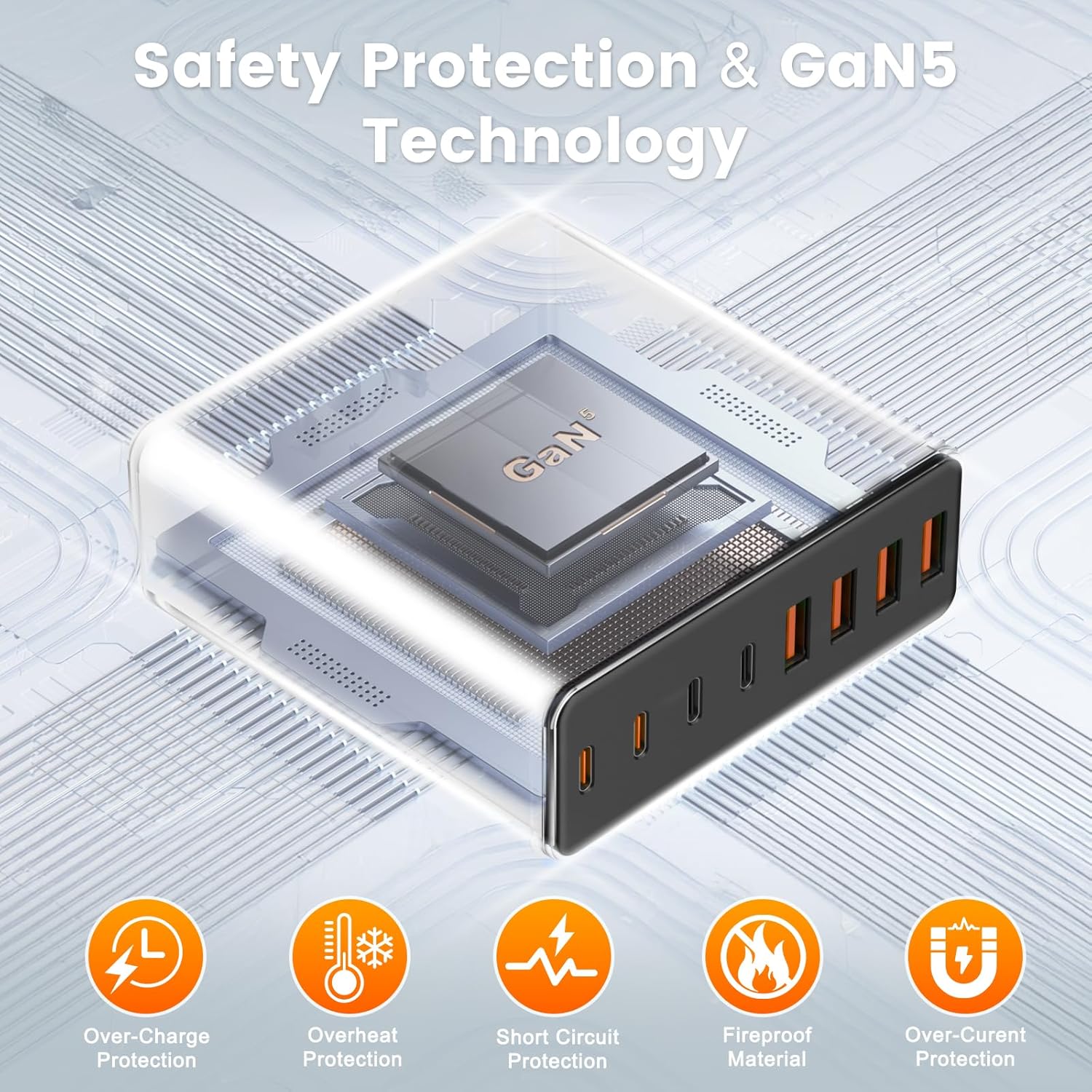 【Super-Fast GaN 5 USB C Charger】 Powered by IceShield 5.0 Gallium Nitride (GaN) technology, this usb c GaN charger offers enhanced protection with safeguards against overcharging, overheating, short circuits, overcurrent, and overvoltage. It continuously monitors temperature with over 3 million checks daily, providing reliable safety for your devices and peace of mind.