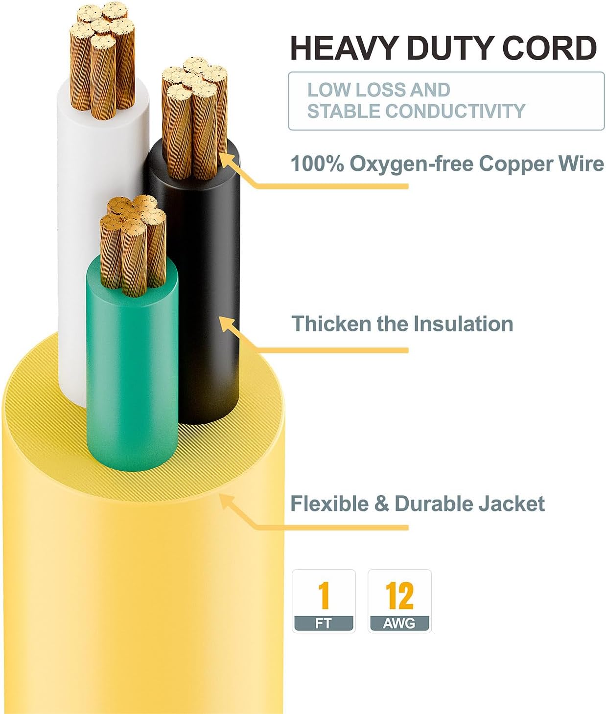 [4-in-1] 12AWG 15 Amp Household AC Plug to 20 Amp T Blade Adapter Cable, NEMA 5-15P to 5-15R/ 5-20R/ 6-15R/ 6-20R, 4 in 1 AC Adapter,15A 125V to 20A 250V Extension Cable, 1FT
