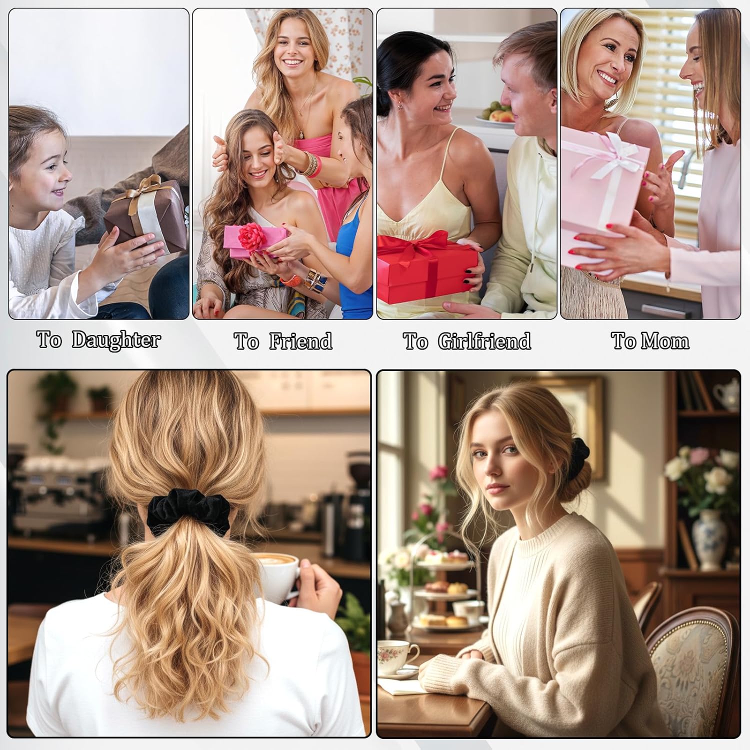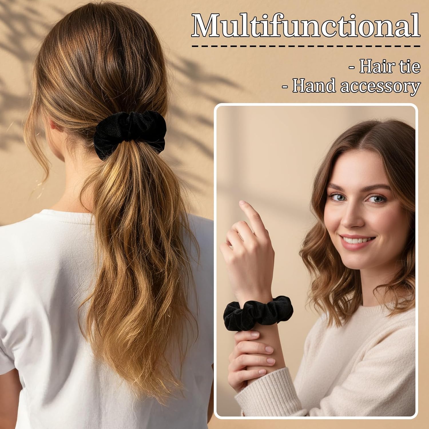 【Multi-Scene Versatility】This 4-pack of black scrunchies offers versatile use for various activities. Wear them as hair accessories during workouts, as wristbands while running, or as fashion accessories for daily errands, ensuring your valuables stay accessible.