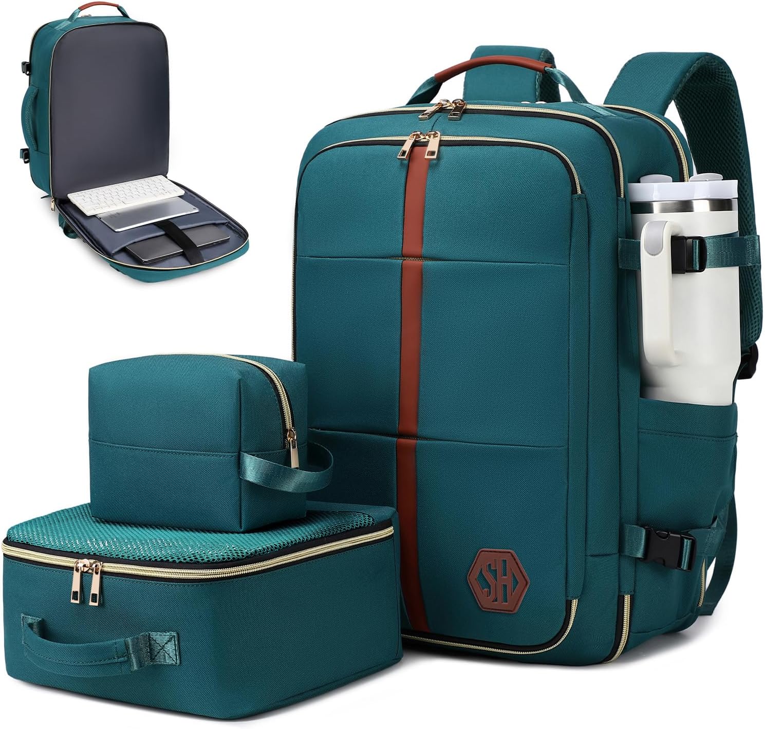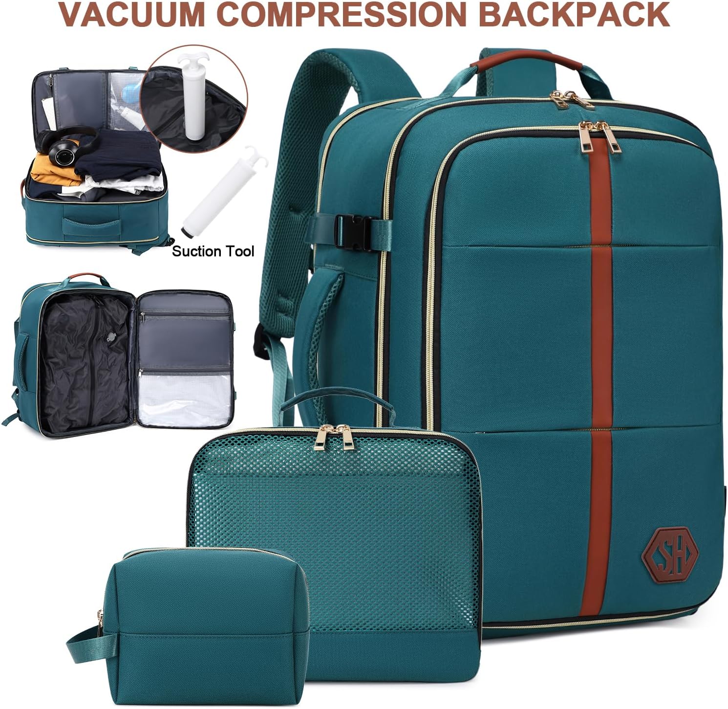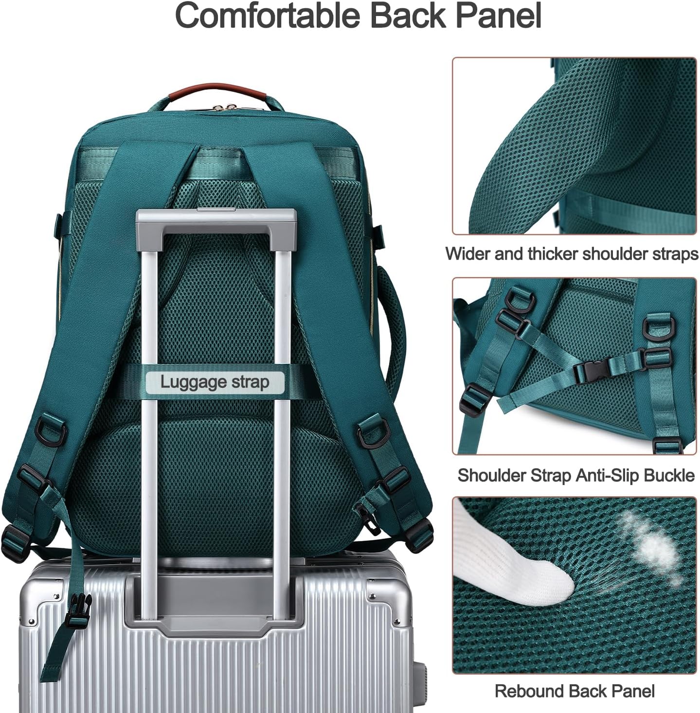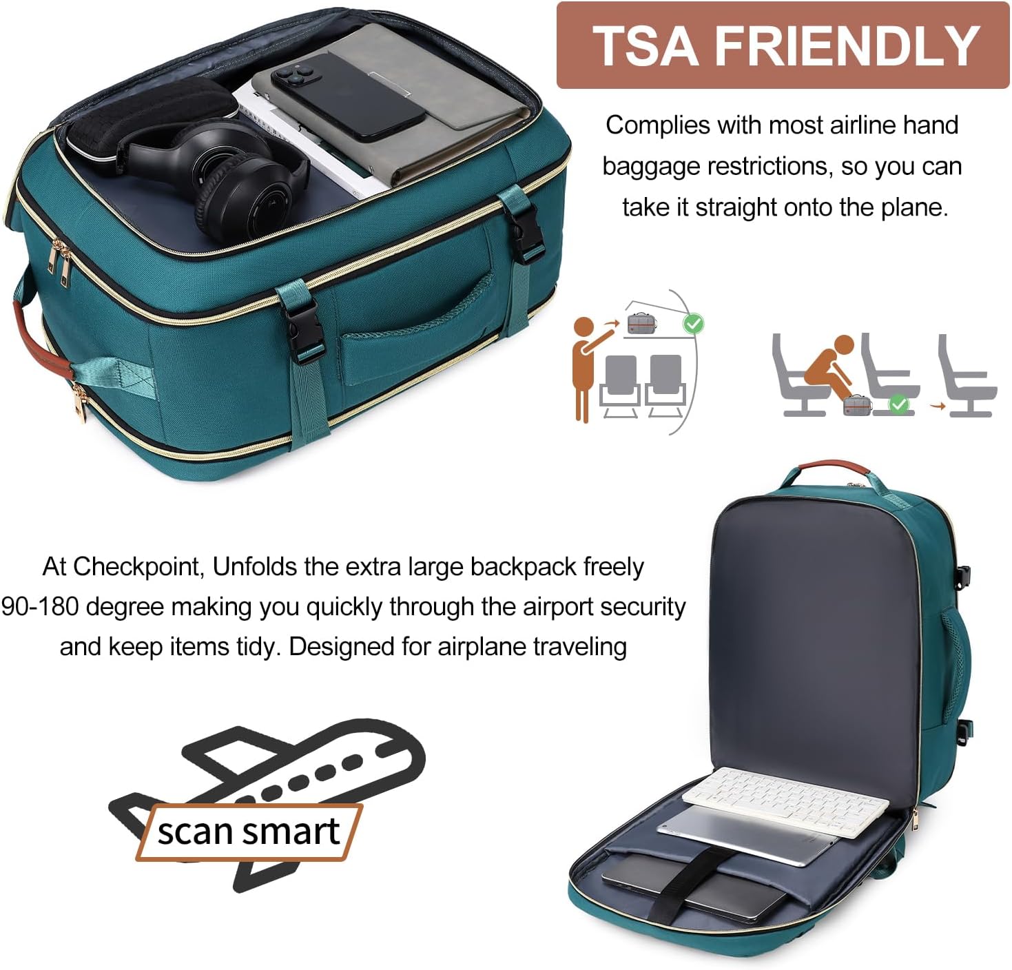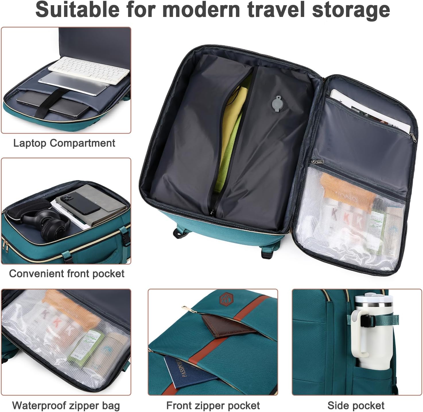 40L Travel Laptop Backpack for Women & Men, Airline Approved Carry On Luggage Overnight Bags, Waterproof Personal Item Bag, Weekender Essentials Backpacks Vacuum Backpack Dark Green