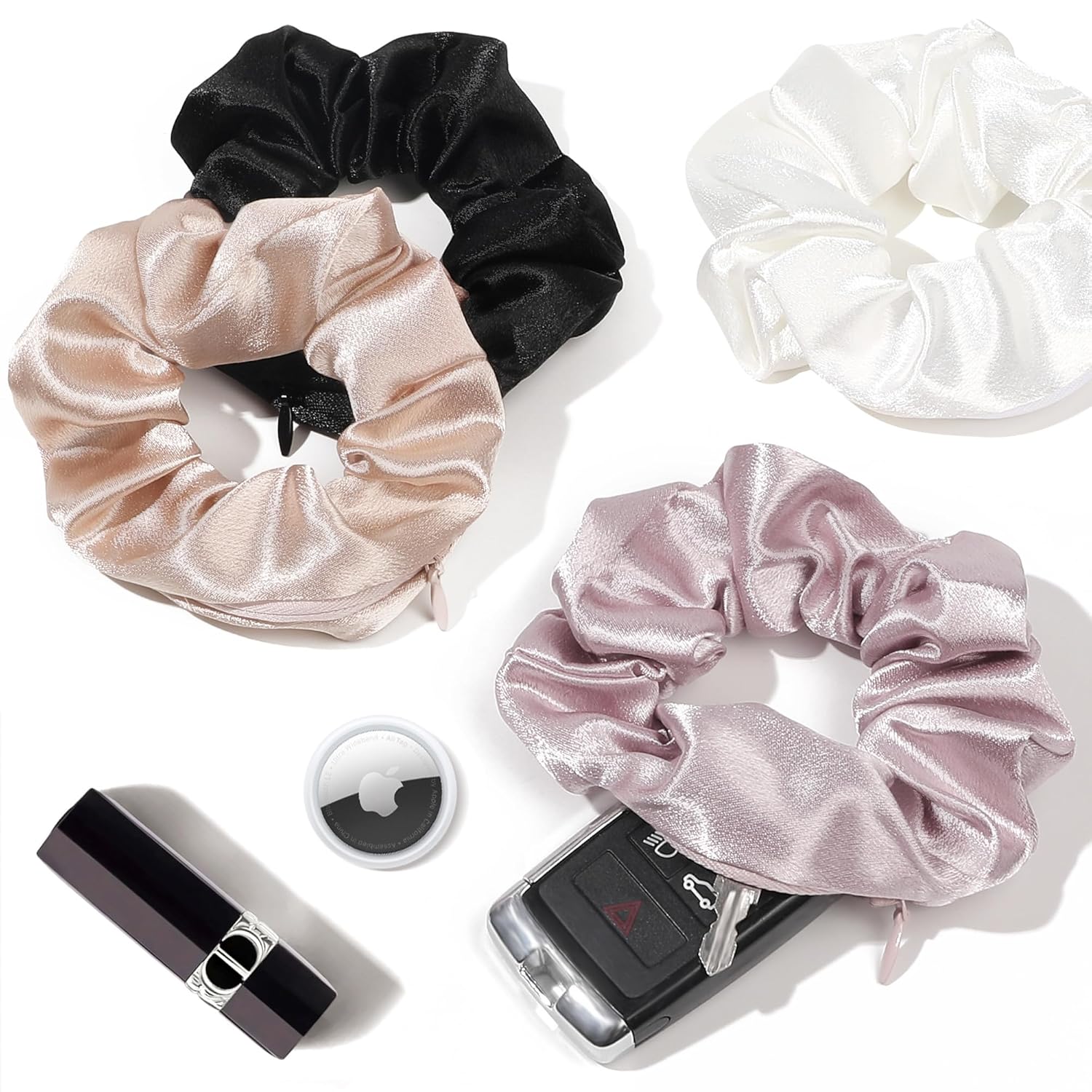 【Versatile and Convenient】: Whether you’re hitting the gym, running errands, or enjoying a night out, these zippered scrunchies are the perfect accessory. They easily transform from a stylish hair tie into a chic storage pouch for your small items.