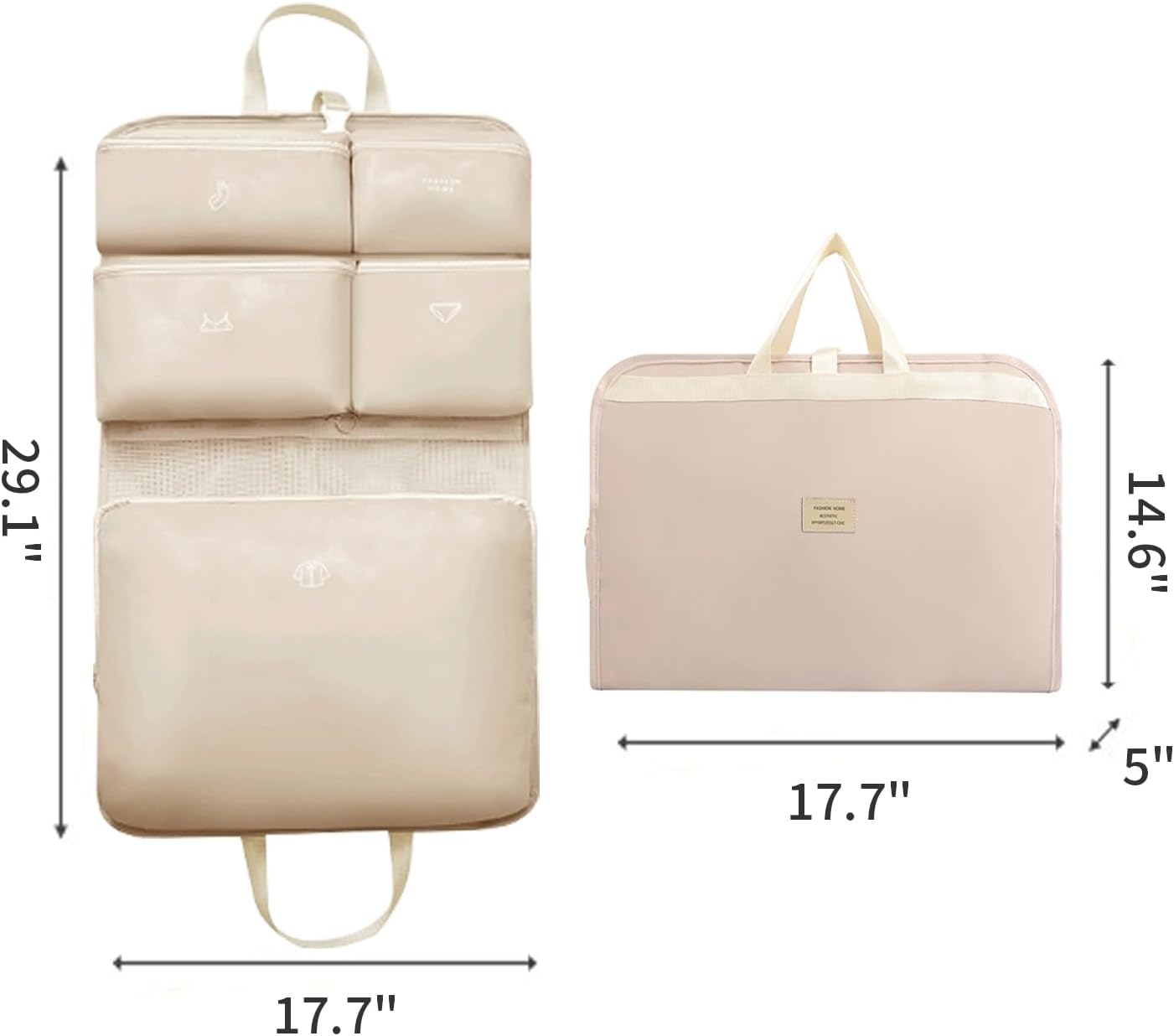 7-in-1 Travel Storage Bag, Foldable Hanging Packing Cube with Compartments for Clothes, Beige