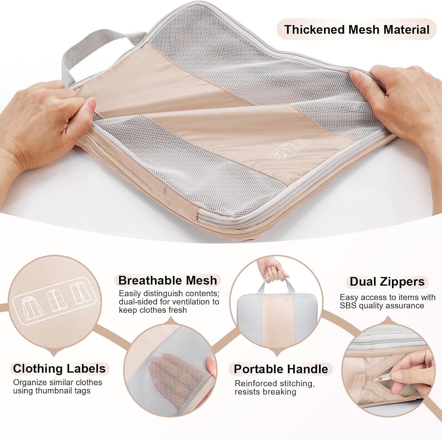 8 Set Compression Packing Cubes for Travel Essentials,Compressible Expandable Packing Cubes for Suitcase,OlarHike Luggage Organizer Bags for Travel,Handy Helper for Organizing Clothes(Beige)