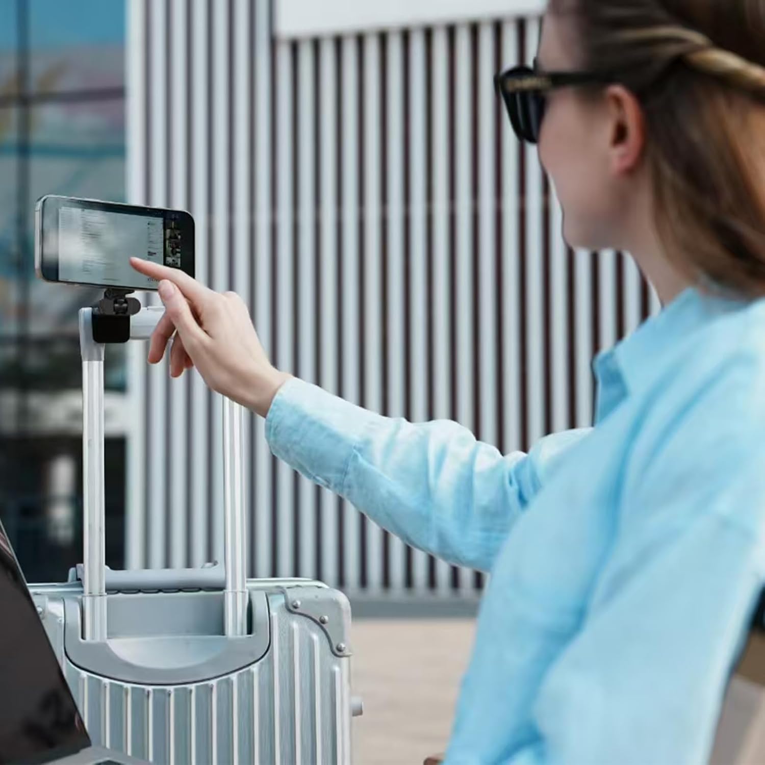 Hightlights:The outlook of the SOGUE airplane phone holder is inspired by the space robotdog with metal telescoping “ARMS”,Made of zinc alloy military metal,premium heavy metal industry,clamp onto the airplane back of the plane seat,luggage handles, tray tables, desks, chairs, shelves, beds, books.Beyond its clamping function,the airplane phone holder mount can double for magsafe phone stand for desk,tripod on a desk or table,to enhance the luxury of the magnetic phone holder when you fold out the arm without extra tools