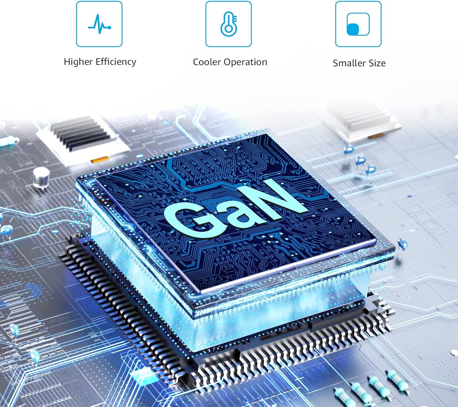 GaN technology: GaN components waste less power and produce less heat (compared to silicon), which results in a more efficient charge