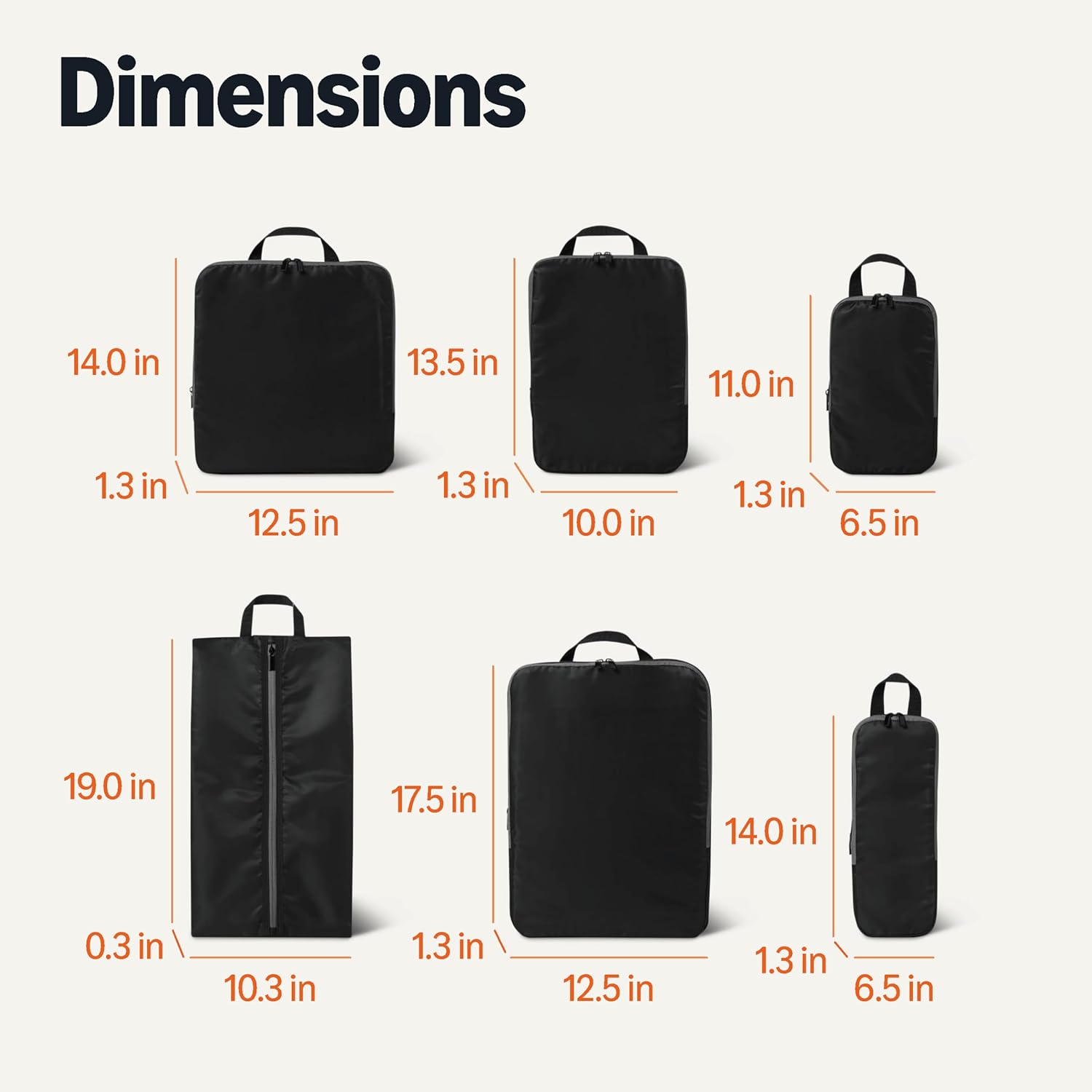 Packing organizer cube (6-pack) in Black for storing items; ideal for travel or home