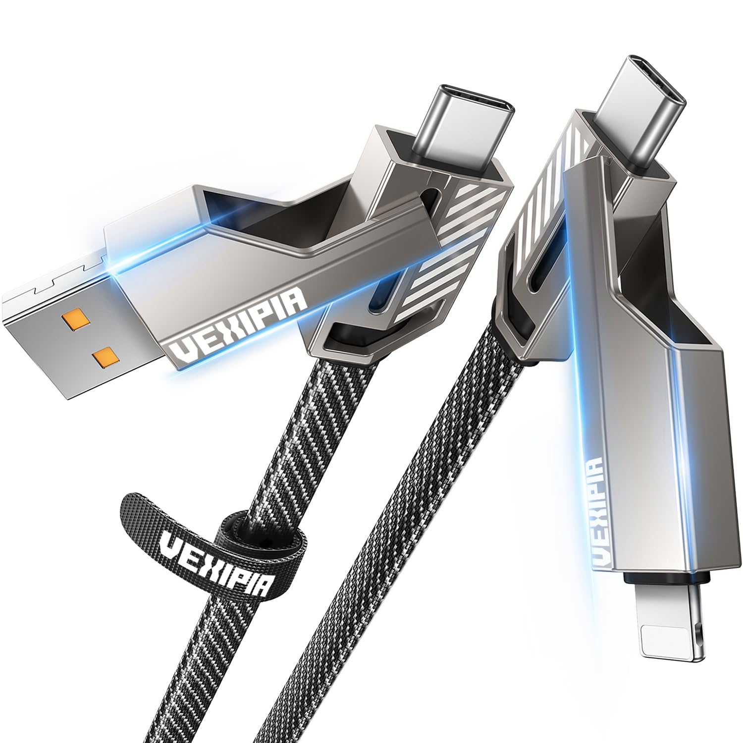 Flexible Charging Options: Gain full control over your charging setup with a versatile design featuring a fixed 3 ft length and two adjustable sections, each capable of shortening from 1 ft to meet your specific needs.