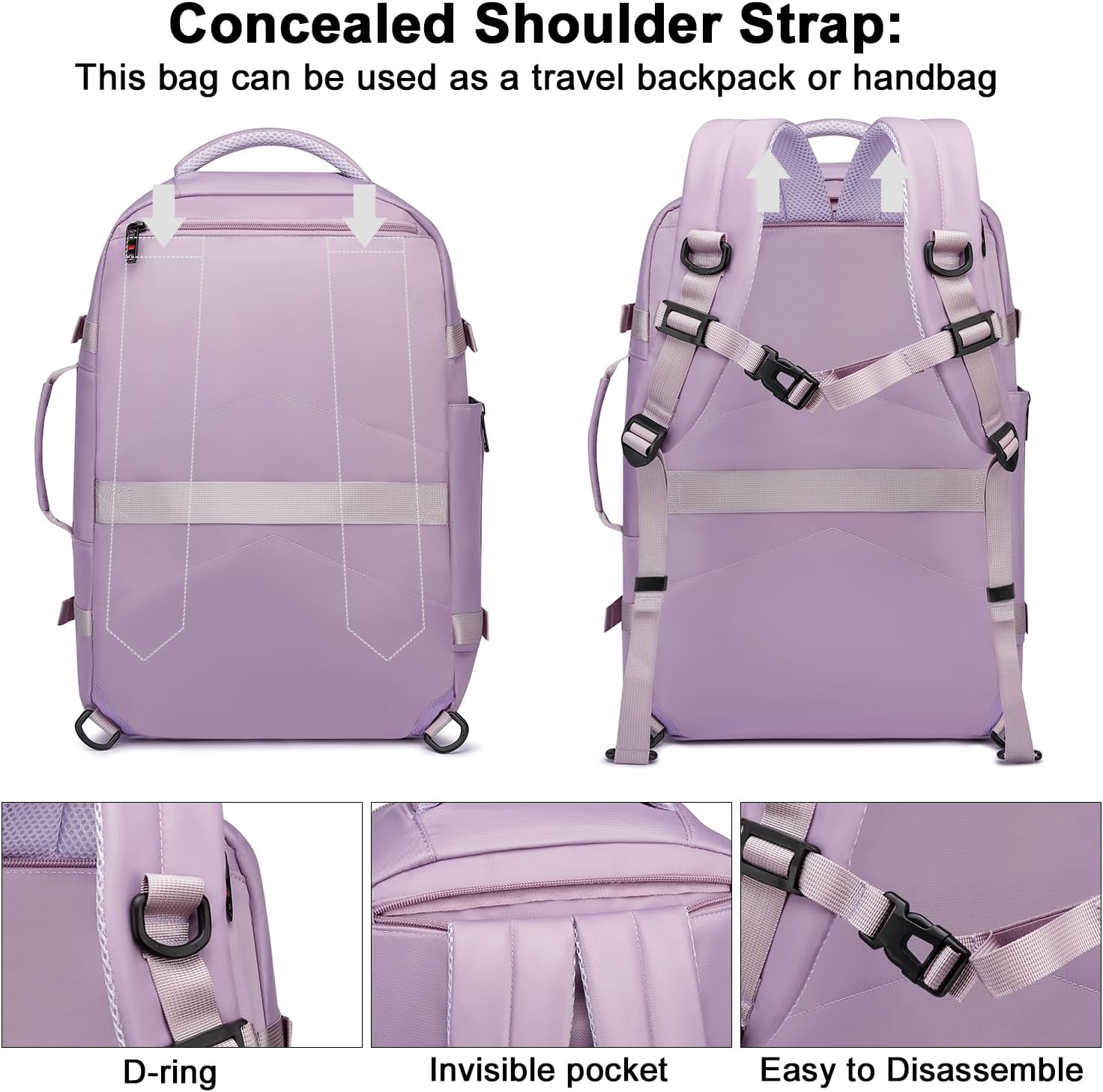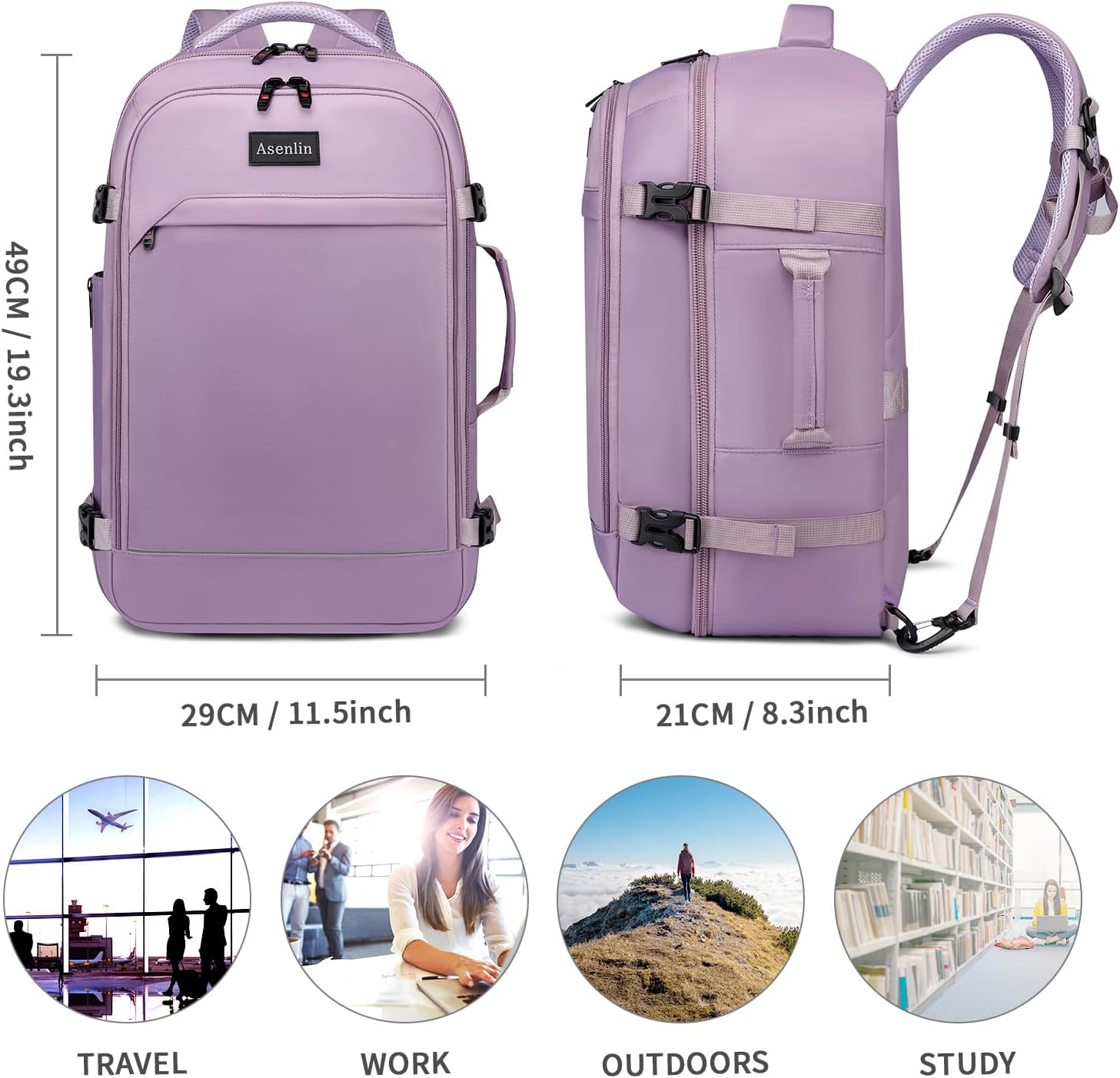 Asenlin 40L Travel Backpack for Women Men,Fit 17.3 Inch Laptop Backpack Flight Approved Luggage Carry On Water Resistant for Weekender Overnight Large Daypack Purple