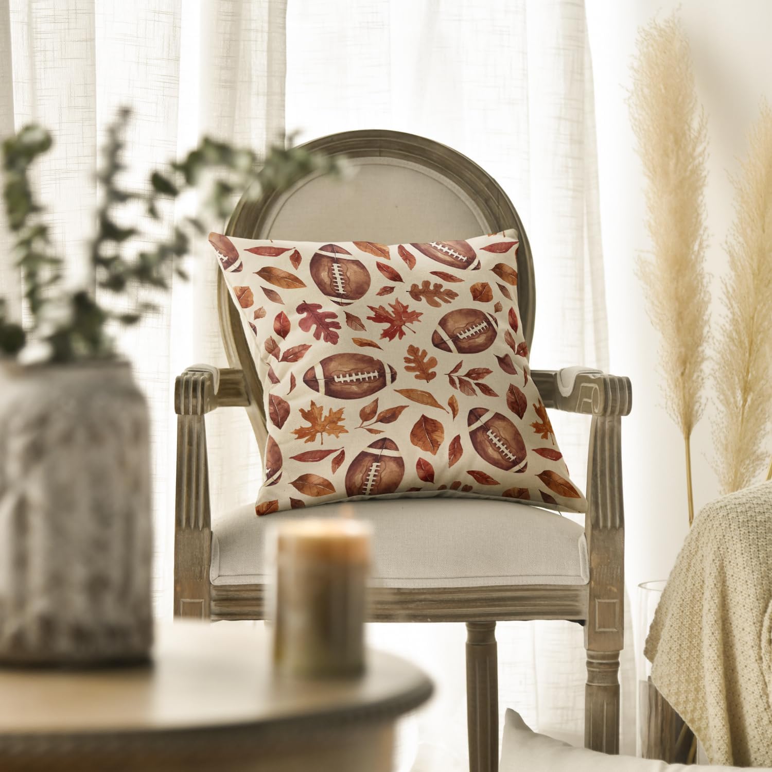 AVOIN colorlife Fall Football Maple Leaves Throw Pillow Covers 18×18 Inch, Seasonal Autumn Thanksgiving Harvest Cushion Case Decoration for Sofa Couch Set of 2
