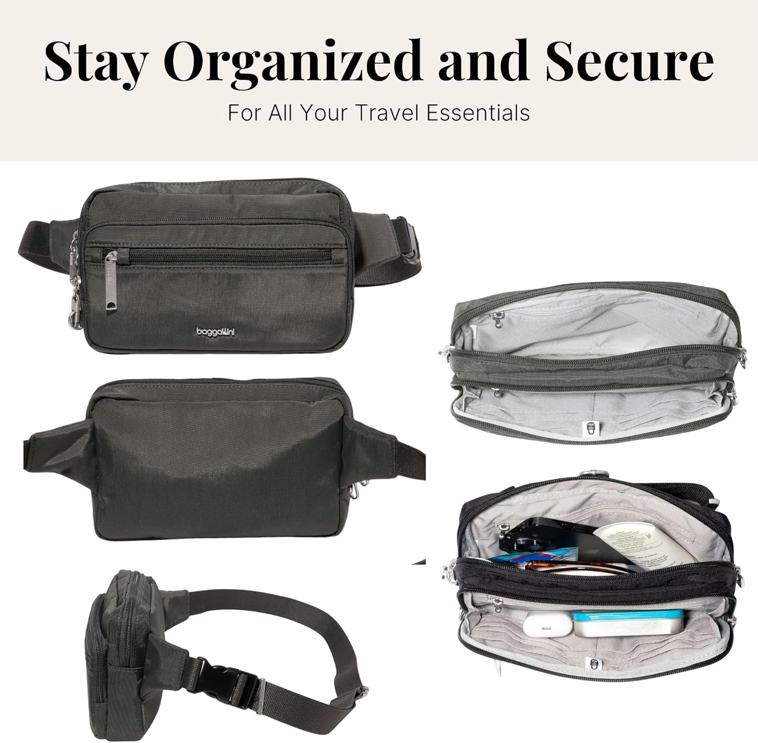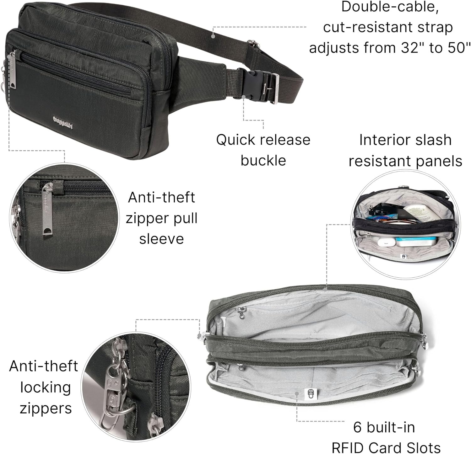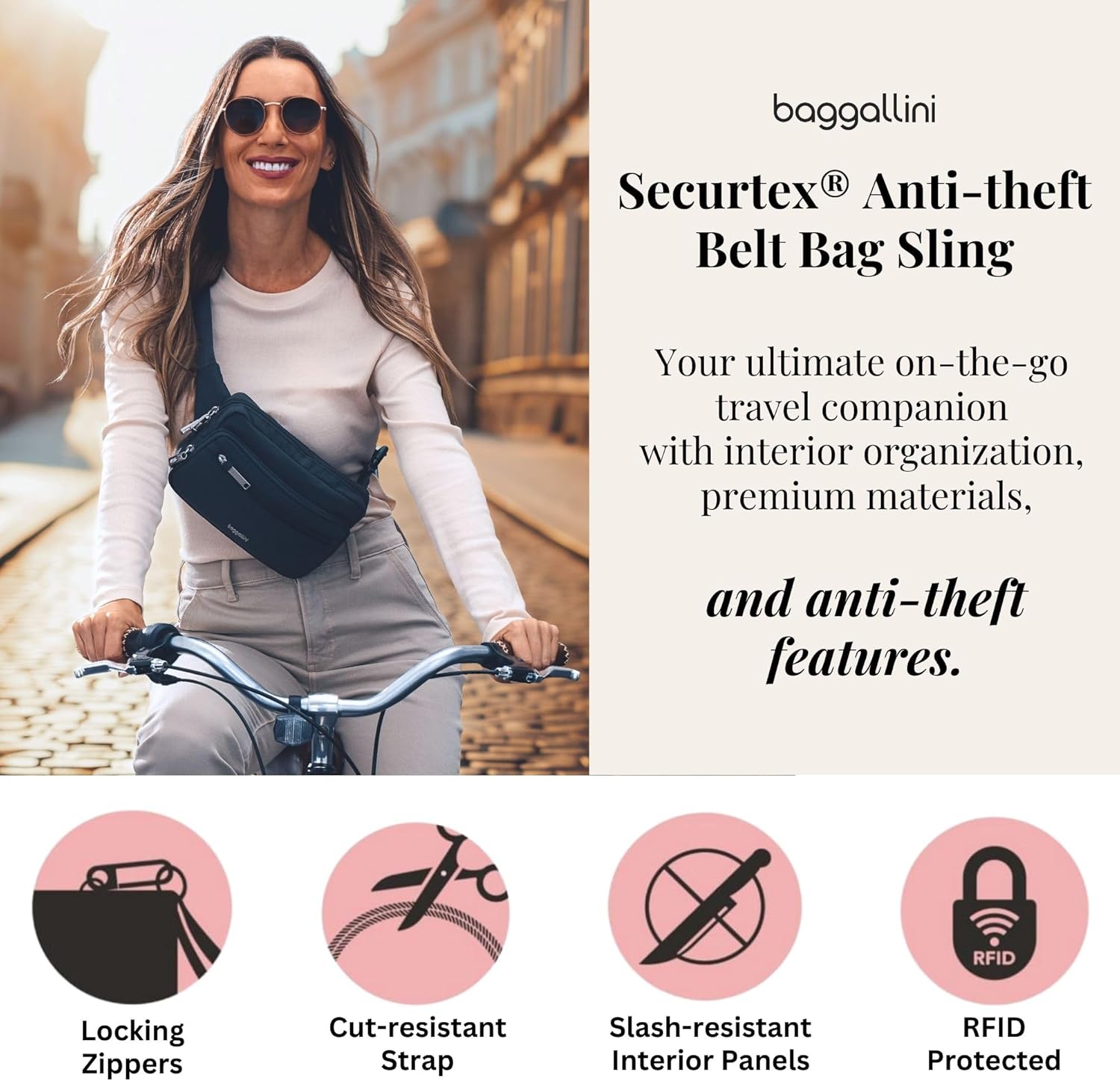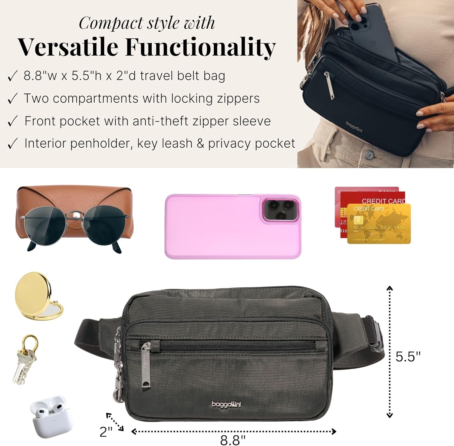 Baggallini Securtex Anti-theft Belt Bag 8.8″x5.5″ Crossbody Fanny Pack for Women RFID Wallet Locking Zipper Travel Purse