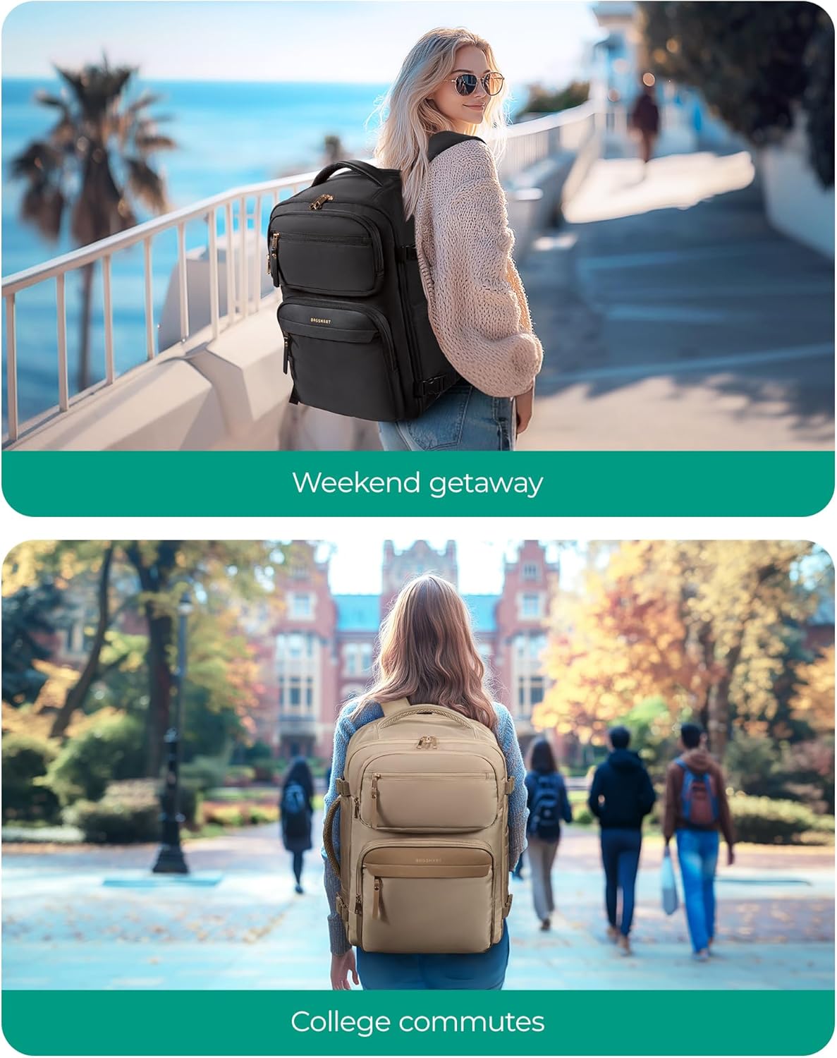 Spacious and Accessible: Designed with a 180° clamshell opening, this roomy backpack for women allows for efficient packing and offers ample space comparable to a 16″ carry-on luggage, making travel backpack carry on flight approved perfect for short trips or daily commutes. weekender backpack for women accommodates everything from work essentials to weekend getaway gear with ease