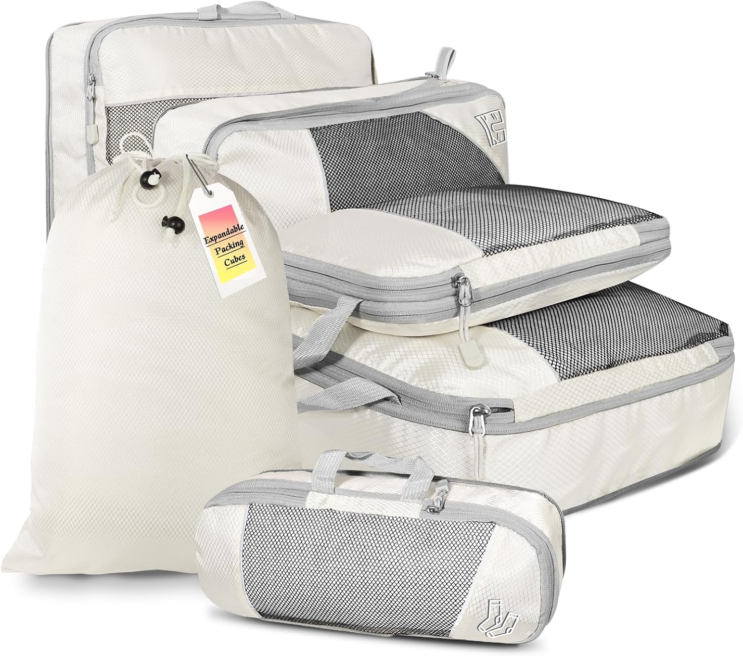 Beeyond Compression Packing Cubes Set – 6 Pieces for Travel and Luggage Organization, Includes Large & Small Cubes, Accessories Bag, and Laundry Bag