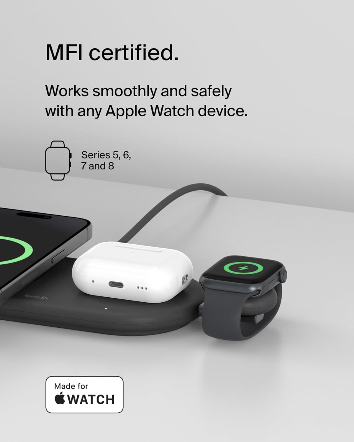 COMPACT and PORTABLE: Slim and lightweight, its travel-friendly design makes it the perfect charger for your travels – slipping easily into your bag or carry-on. Plus, a detachable USB-C Apple Watch Puck adds even more convenience for travel and storage.