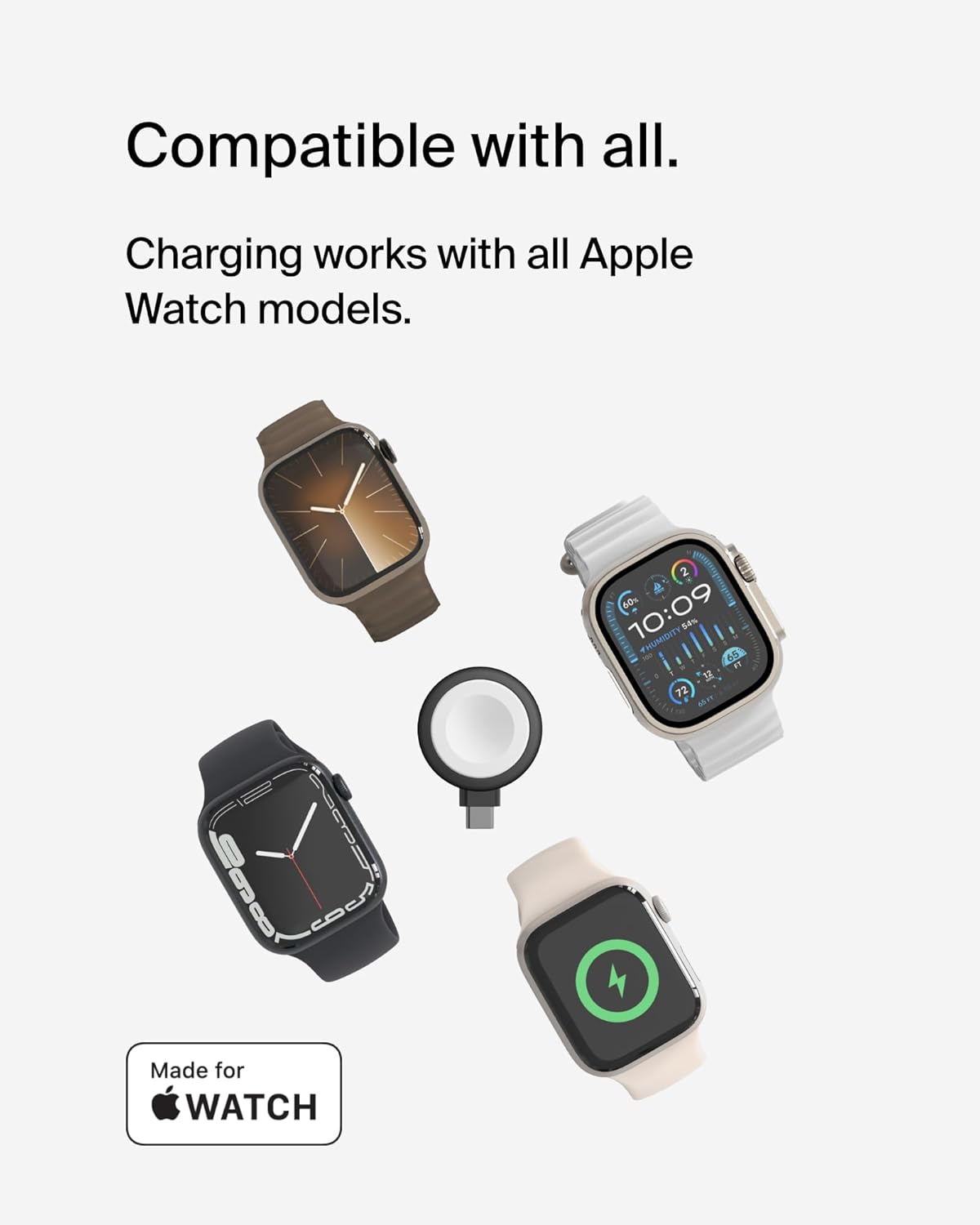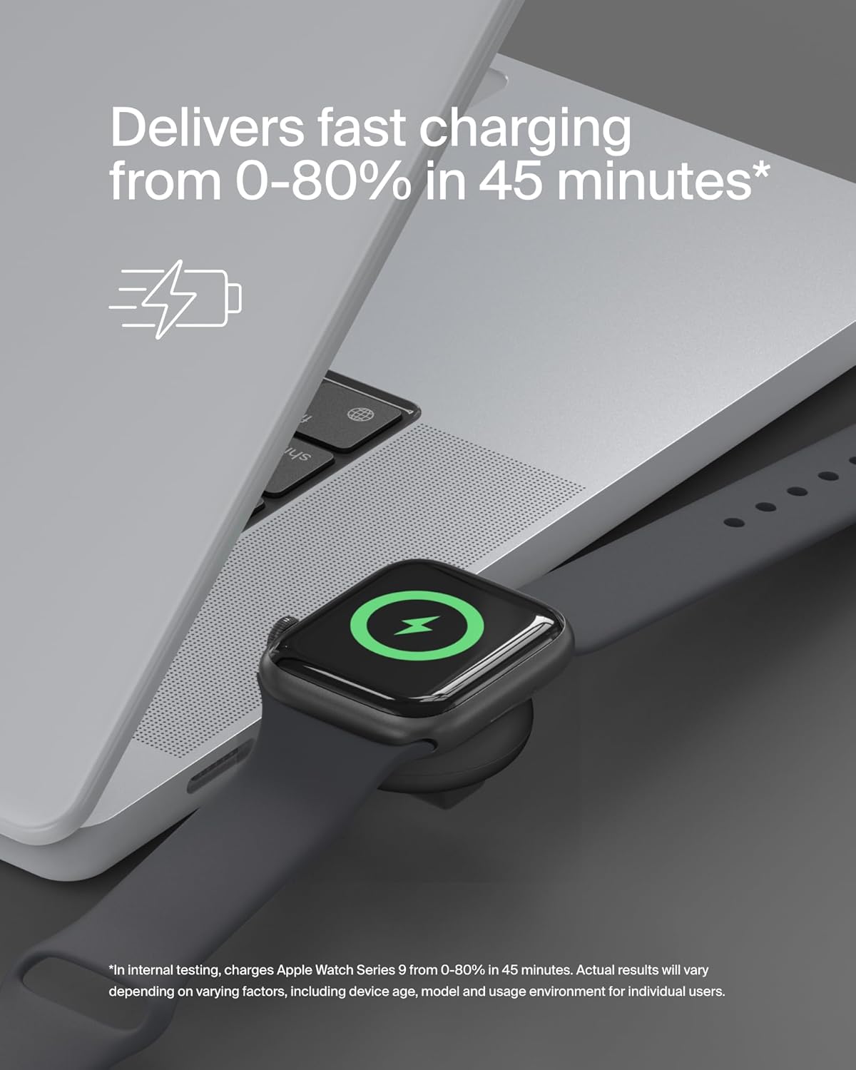 FAST CHARGING: BoostCharge Portable Apple Watch Charger provides fast charging support specifically to the Apple Watch 7 Series and later from 0-80% in just 45 minutes, as well as Apple Watch Ultra and Ultra 2, up to 5W.