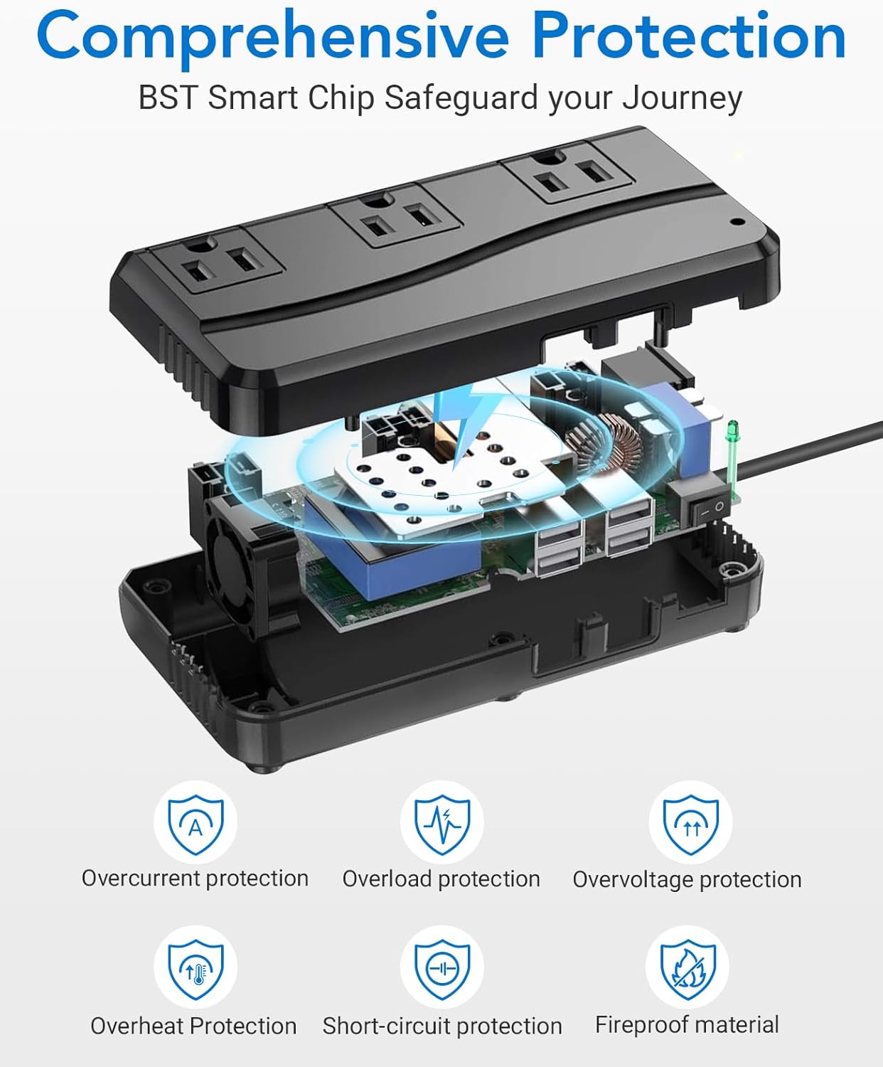 CERTIFIED SAFETY AND RELIABILITY – Our NRTL-tested and upgraded hardware provides comprehensive protection for you and your devices. It features integrated safeguards against over-current, overload, overheating, and short-circuiting. In the event of a short circuit, a red indicator light will illuminate and the power output will be automatically cut off to ensure maximum safety for both you and your equipment.