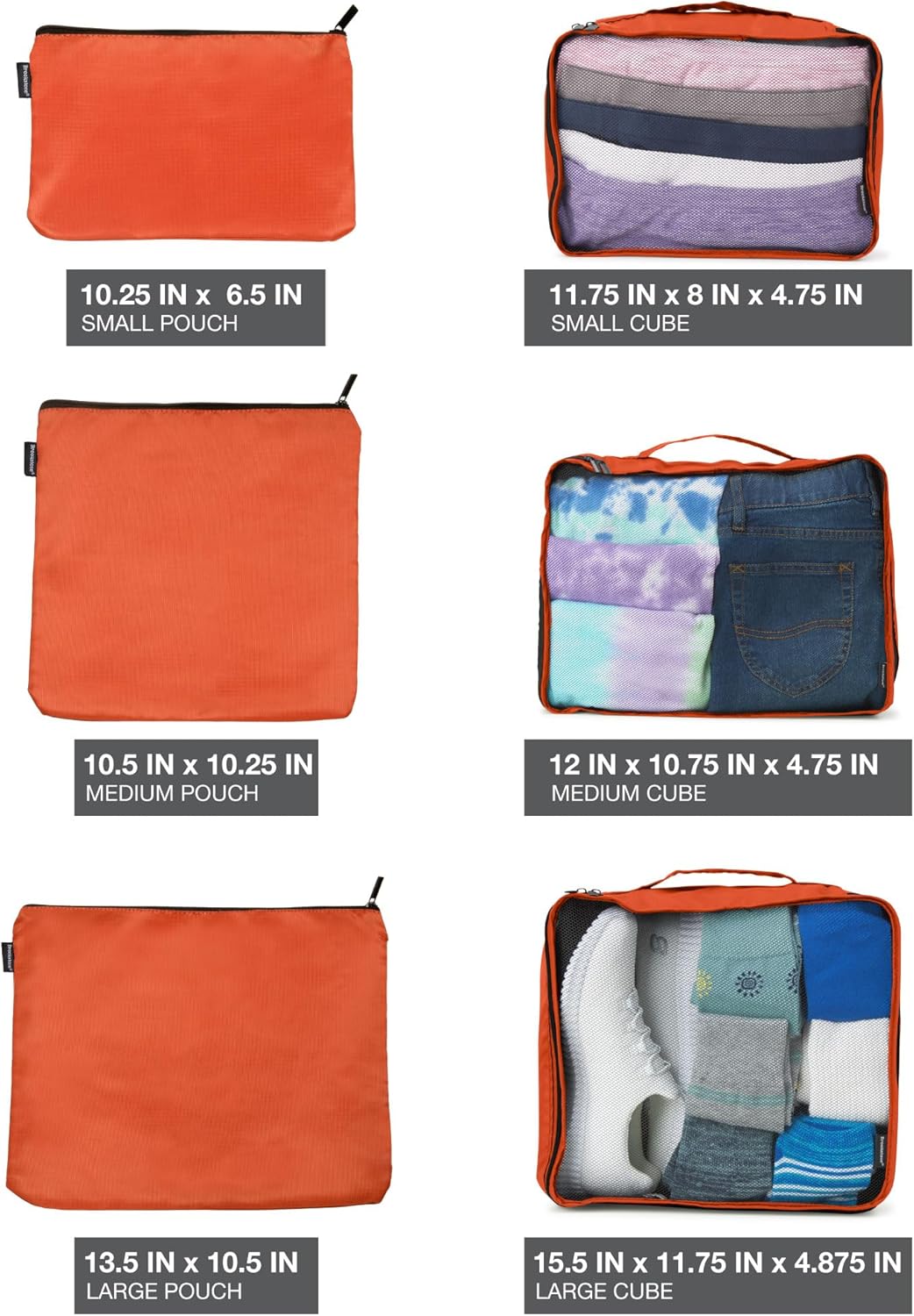 Brookstone Packing Cubes – 6 Piece Compression Packing Cubes for Travel Essentials – Luggage Sets Cube Storage Organizer Bags, Size One Size, Orange