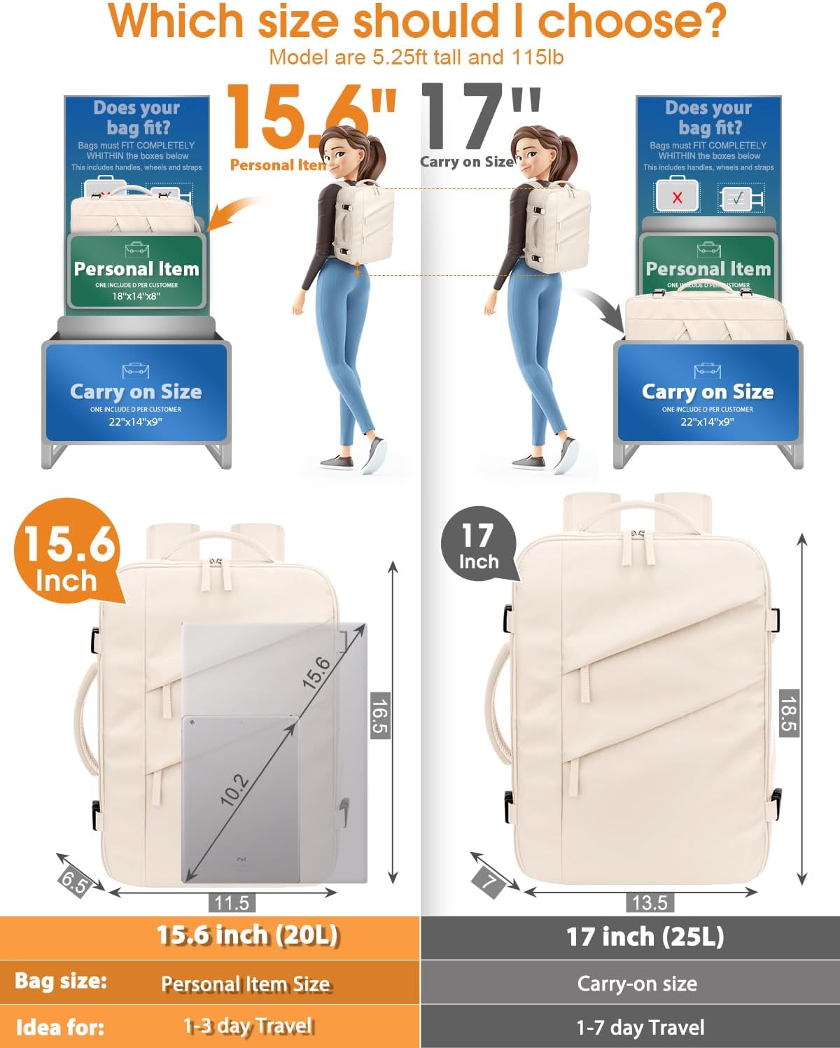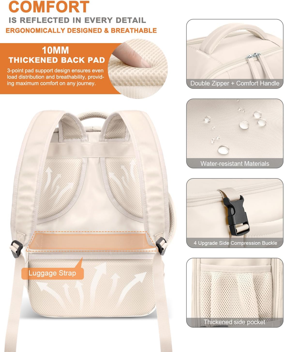 Capolo Travel Backpack for Women Men Waterproof Laptop Backpack Flight Approved Carry On Backpack Overnight Weekender Bag College Bookbag for Business, Work, Traveling Fits 15.6 ” Laptop,Beige