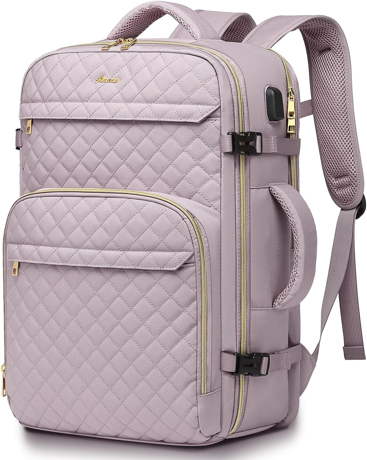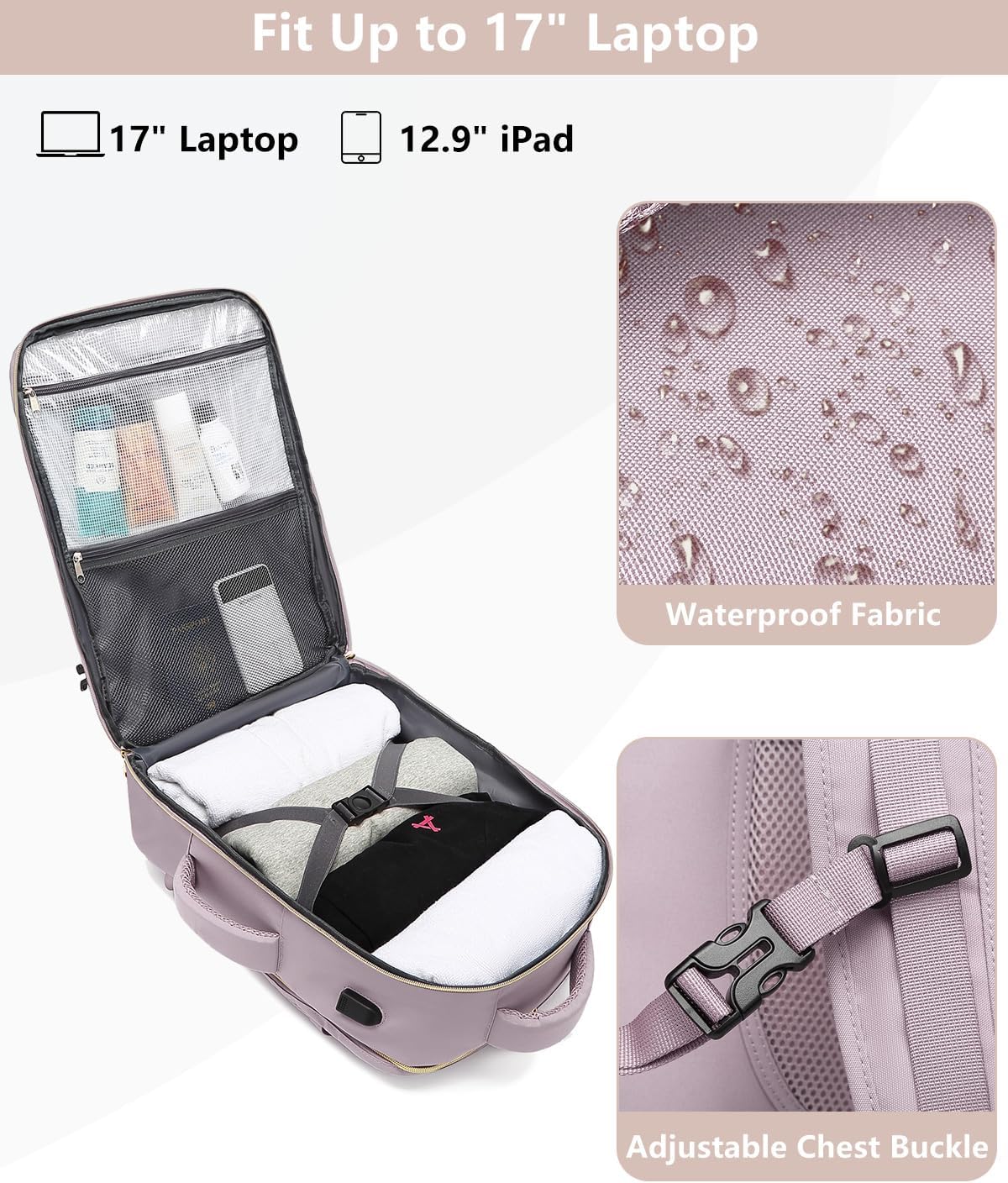 Carry On Women Travel Backpack: TSA Flight Approved Personal Item Backpacks Large 40L Waterproof Luggage Suitcase Backpack Fit 17 Inch Laptop Weekender Overnight Traveling Bag with USB Charge Nude