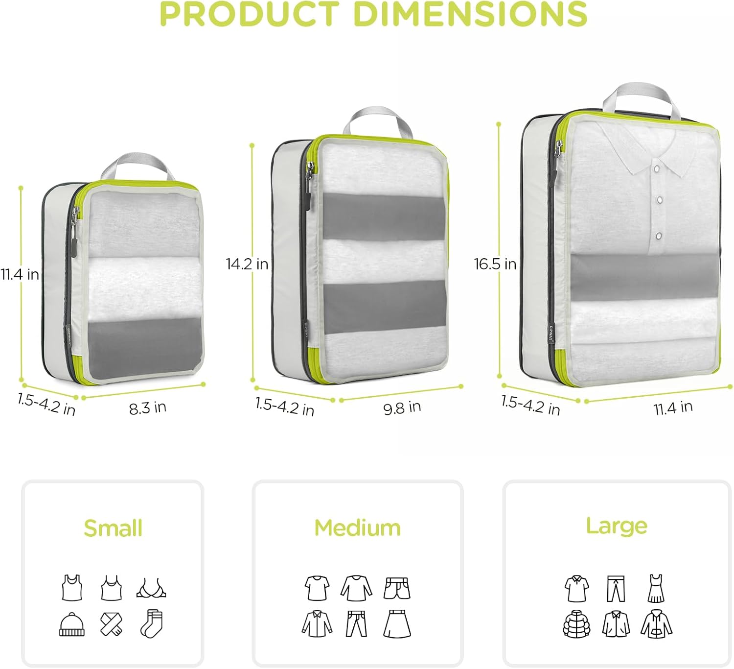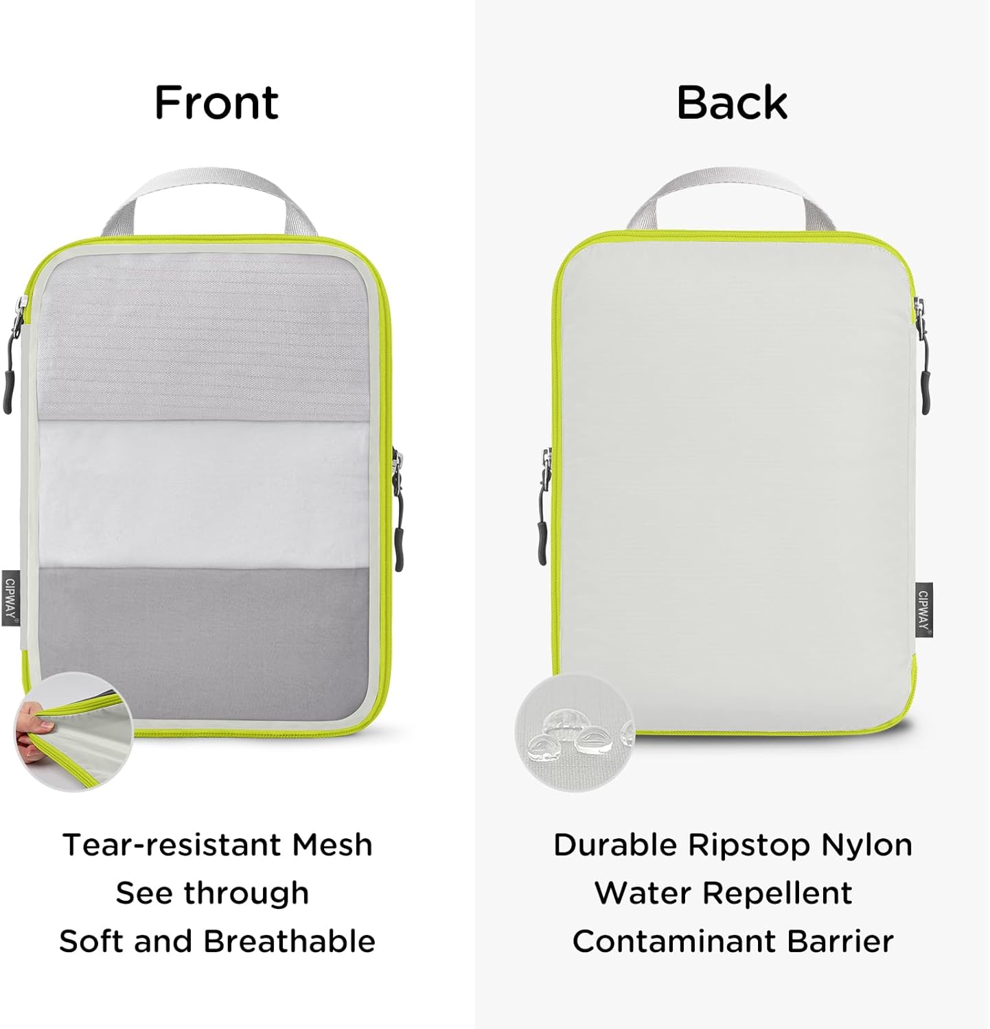 Space Saving and Travel Light: Cipway compression packing cubes travel design with extra compress zipper to help you packaging your clothes by squeeze the air out of them, you can save more precious space in a carry-on luggage or checked bag, it‘s excellent space-savers to pack more items on your trip