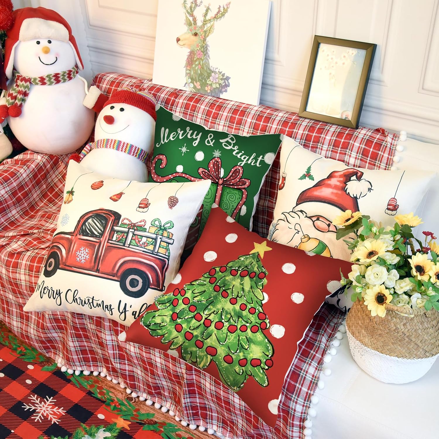 【Comfortable Material】:Breathable linen fabric and handmade make it comfortable, durable, beautiful, our red and green Christmas pillow cover can help you to change Christmas decorations quickly. This Christmas throw pillow cover will refresh your room, is easy to mix and match with other Christmas decorative pillows or winter holiday decorations.