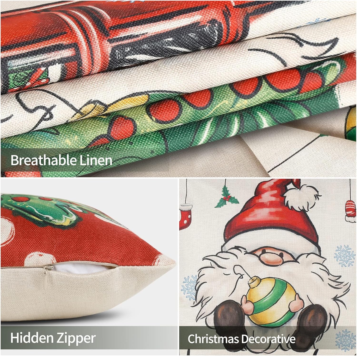 【Standard Size】:Set of 4 pillow covers with different designs, one side is printed with exquisite santa claus truck snowflake Christmas tree design on them, while the other side is blank and with an invisible zipper,does not include inserts or stuffing. Our green Christmas pillow cover fits 16 x 16 inch insert or smaller insert.
