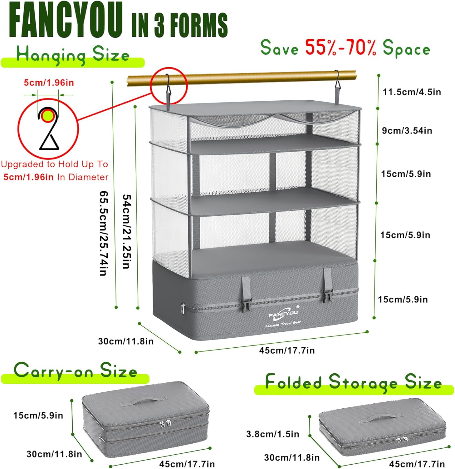 Fancyou Hanging Travel Shelves Packing Cube for Suitcases is a decision to have every exquisite journey: No More Wasting Time on Packing and Unpacking while Traveling