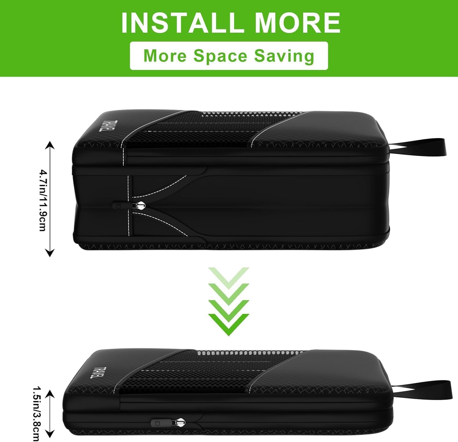 【True Space Saving】Compressing Design, No Space Wasted. Done by adding an extra zipper around the outside that can be zipped up to help squash clothes down and minimize the space inside.Compression design helps remove the extra air out, and saves 50% storage space after compressing.