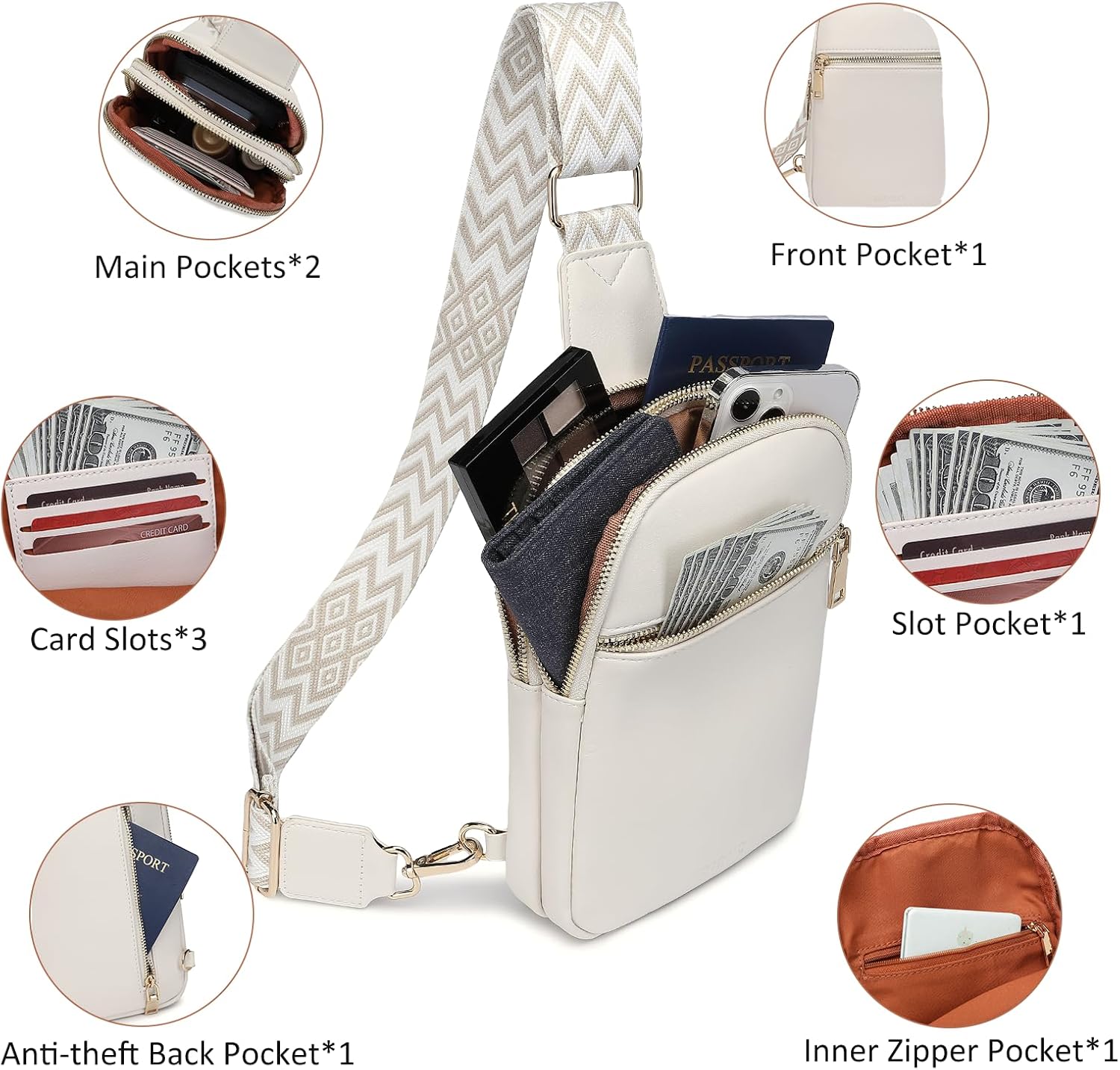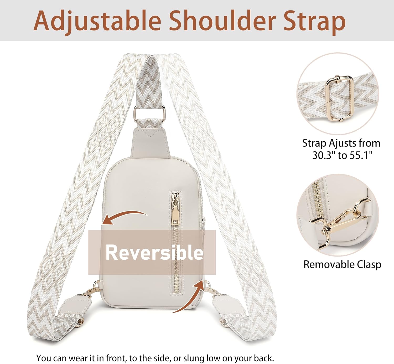 The small sling bag doesn’t smell bad. It’s made of soft and sturdy vegan faux leather, with smooth lining and strong, gold zippers that will stand the test of time. The cross body bag is stylish and lightweight, only 0.7lb, allowing you to carry all your essentials hands free when we go out.