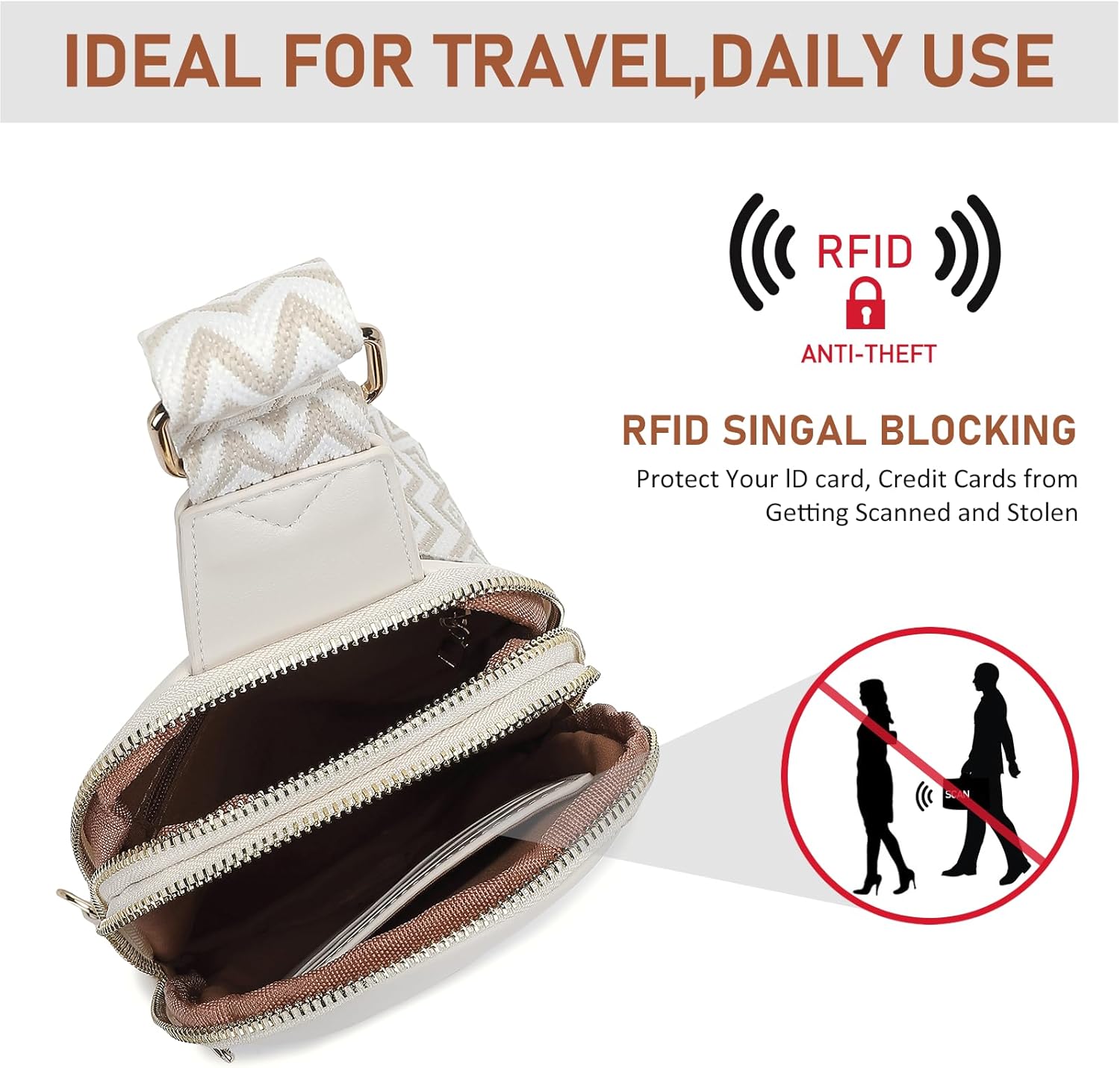 DIOMO Anti Theft Small Sling Bag for Women Cross Body Bag Trendy, RFID Fanny Packs Vegan Leather for Women Travel Belt Purse