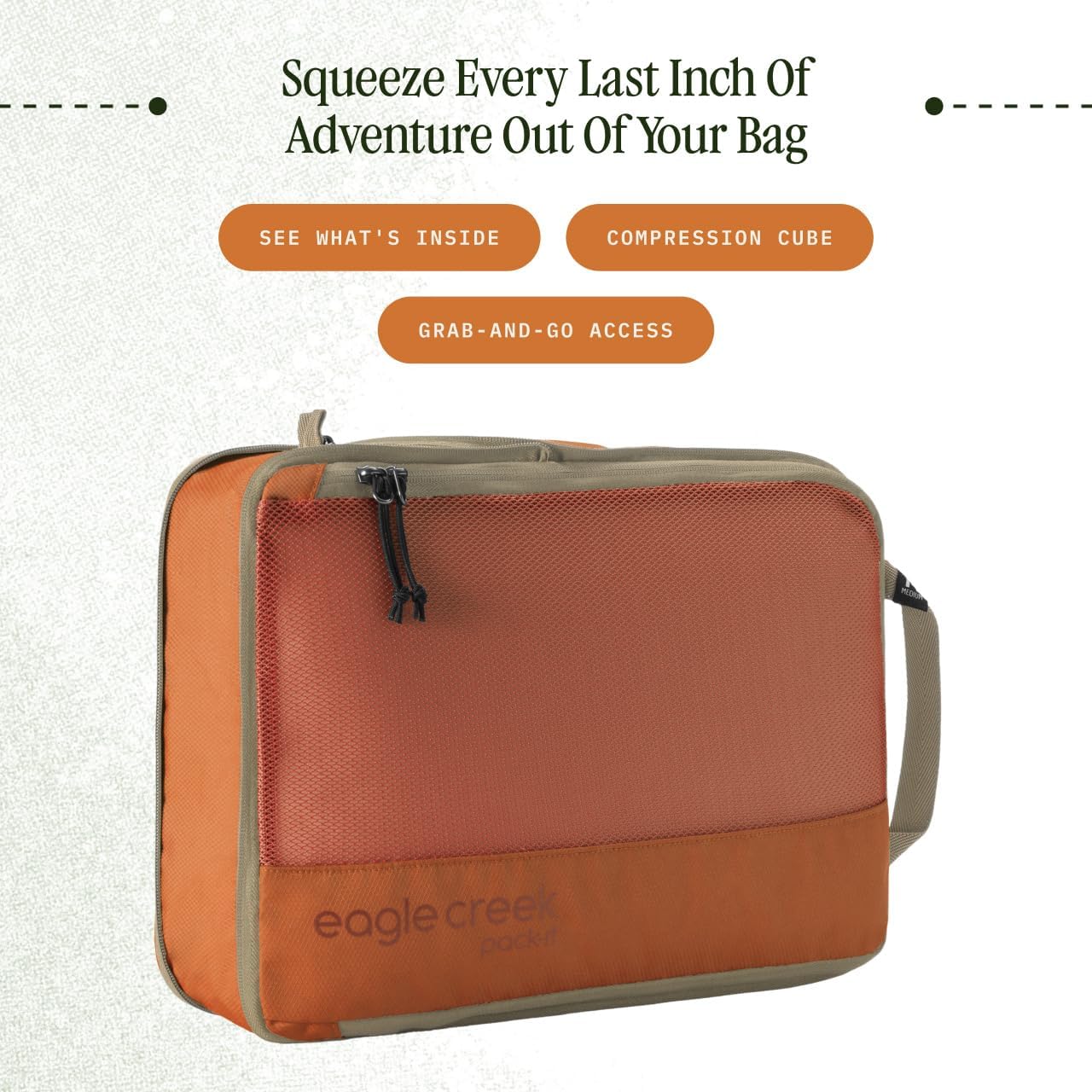 eagle creek Pack-It Reveal Compression Cube – Lightweight Compression Cube for Optimizing Luggage Space – Convenient Top Handle – Easy-Grab Zipper – Washable – Medium – Mandarin