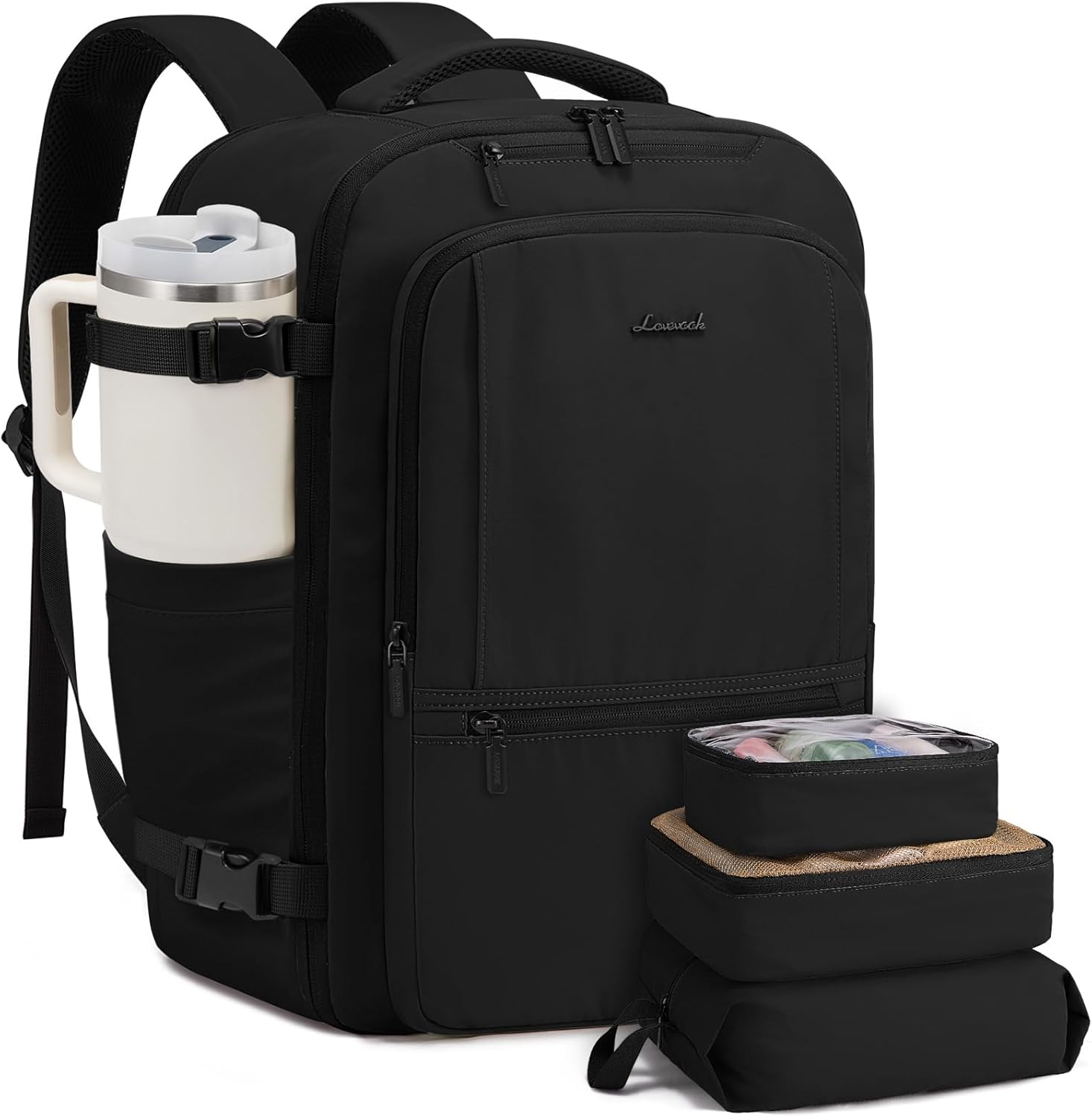 【Roomy CAPACITY】: The carry on Backpack opened up like a suitcase which makes it way easier to pack. The spacious main compartment with two thoughtfully-designed pockets that help your contents more organized and elastic straps are perfect for bulky items like shoes and clothes. Side compression straps adjust the travel bag space so you can pack more.