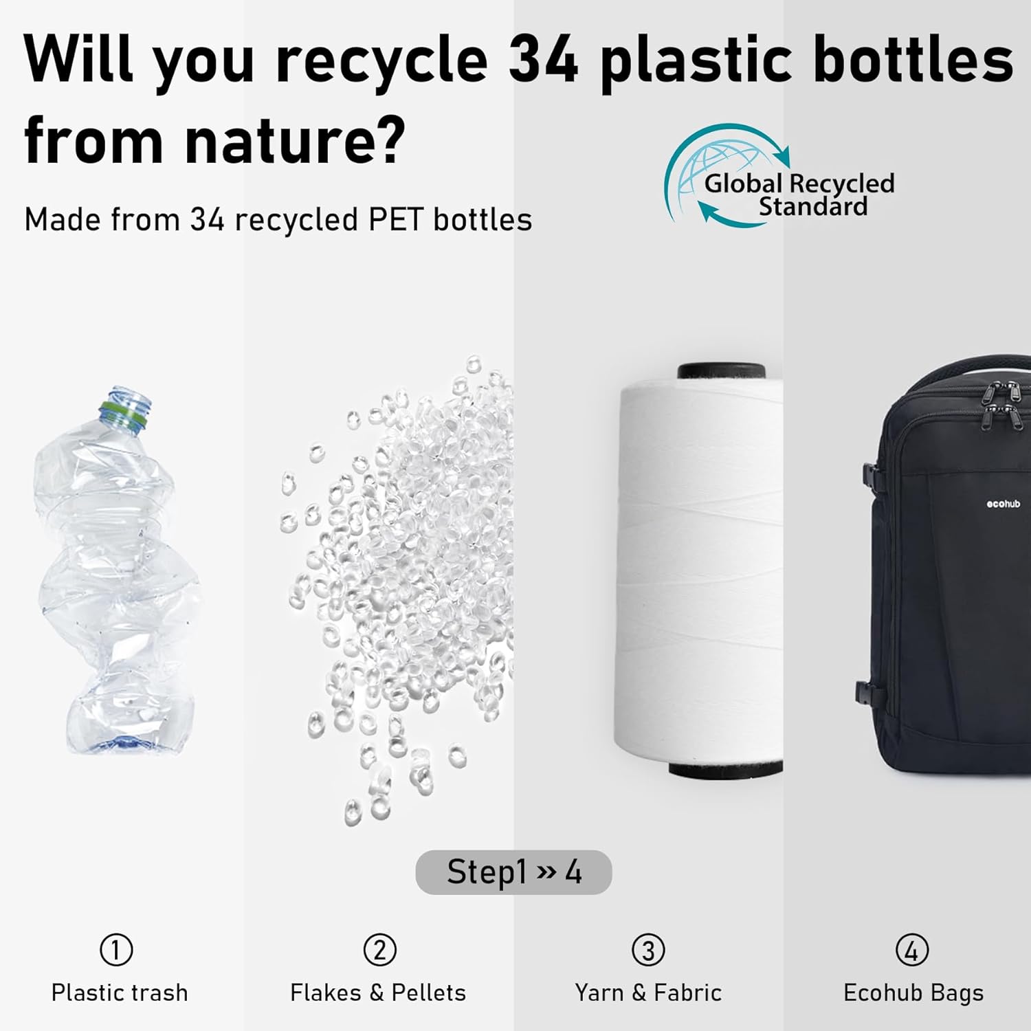 【SUSTAINABLE & GUARANTEE】: Our carry on bag is made from at least 50% recycled materials, with fabric and lining crafted from 34 recycled PET plastic bottles. The water-resistant, lightweight fabric, combined with heavy-duty SBS zippers and reinforced ripstop stitching, ensure durability for any adventure. If you have any concerns, reach out through your order.