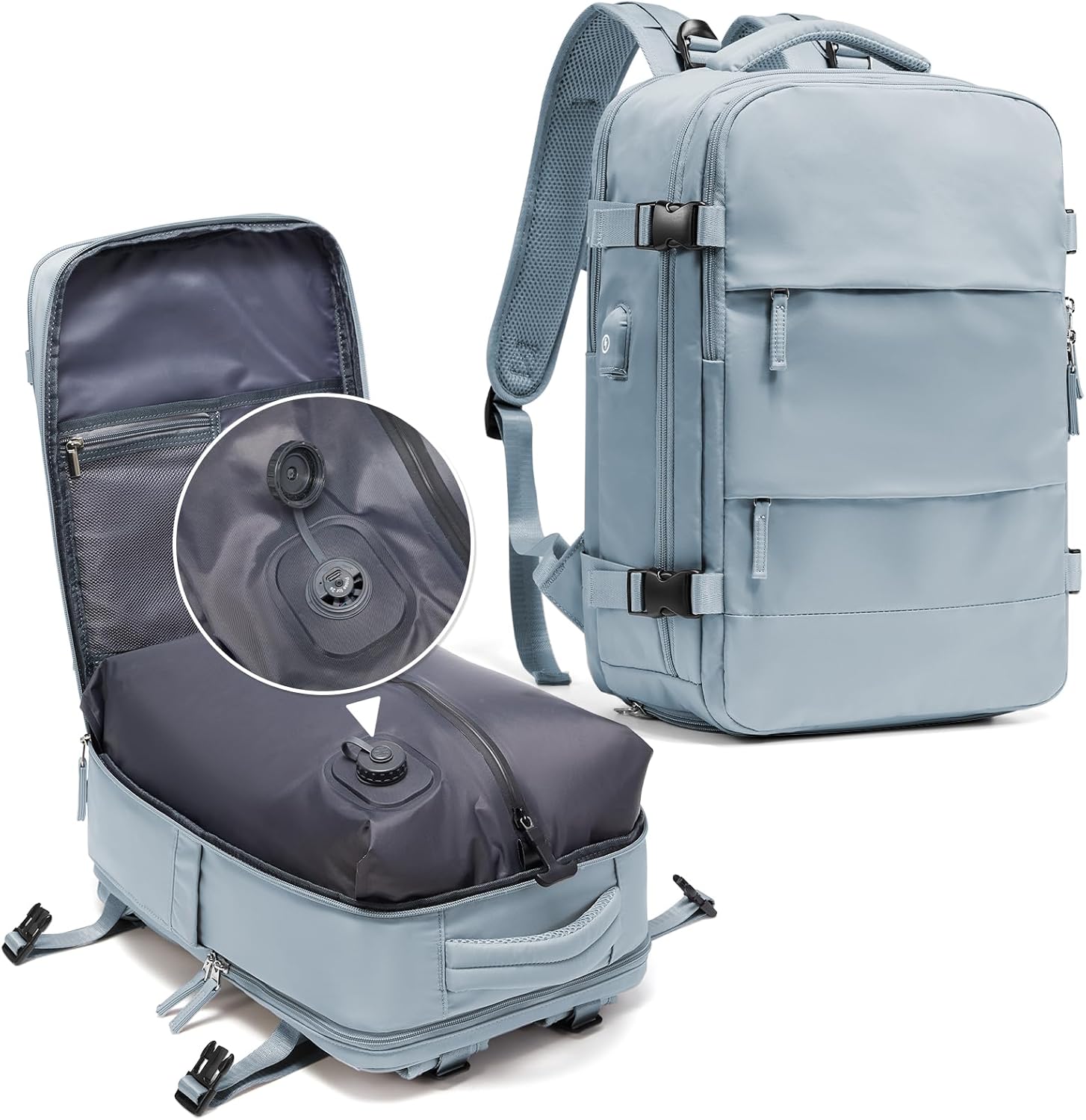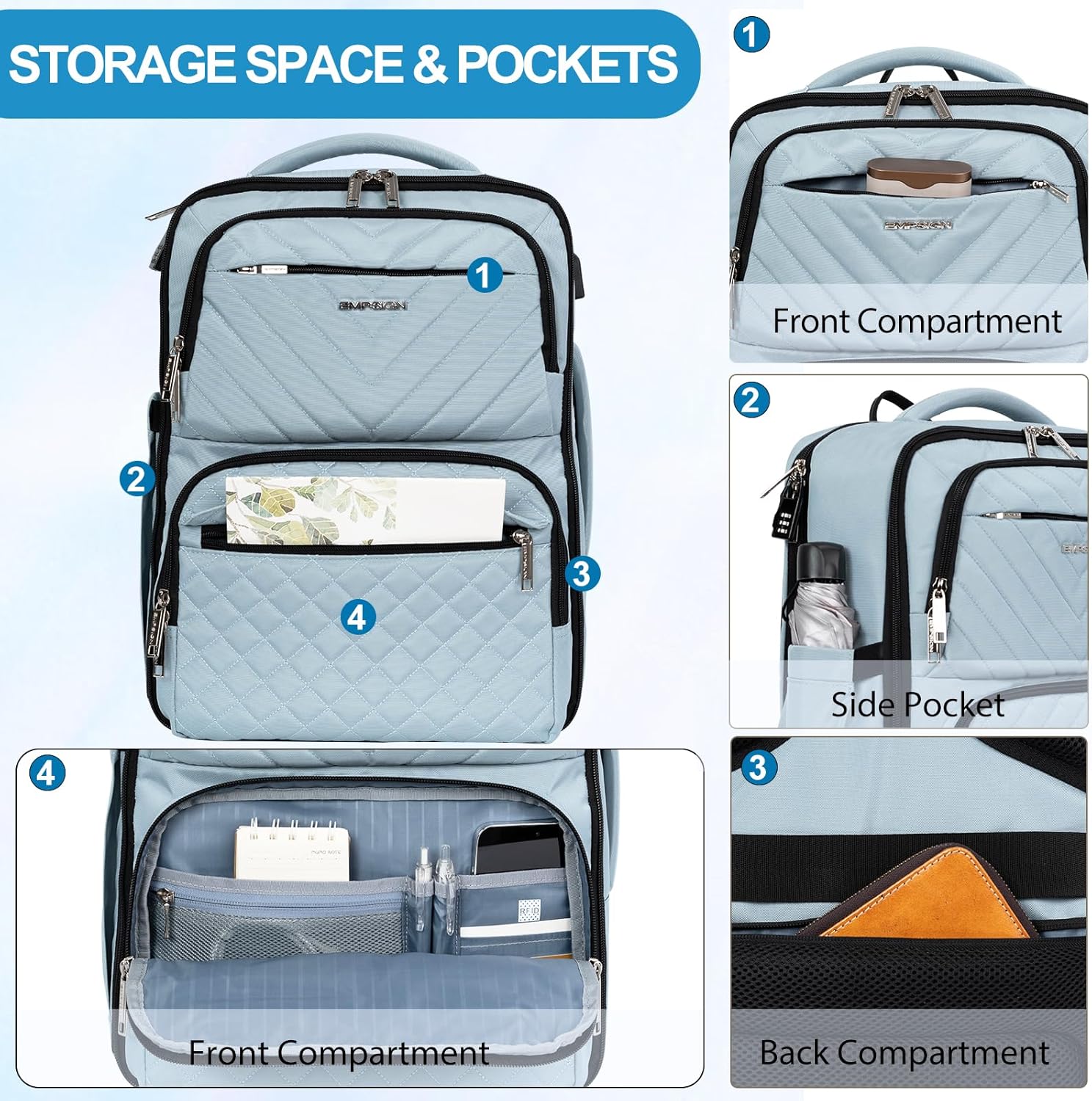 EMPSIGN Carry on Travel Backpack for Women & Men, 17 inch Large TSA Friendly Laptop Backpack with USB Port, Airline Approved Carry On Luggage, Travel Essentials, Weekender Overnight Bags, Light Blue