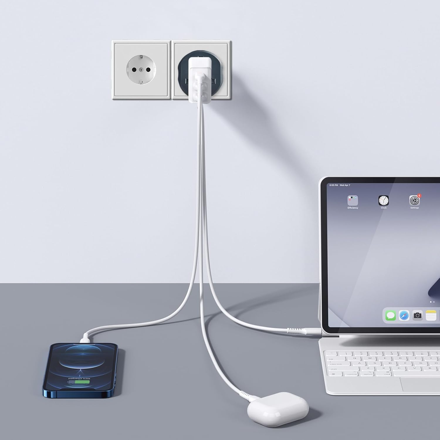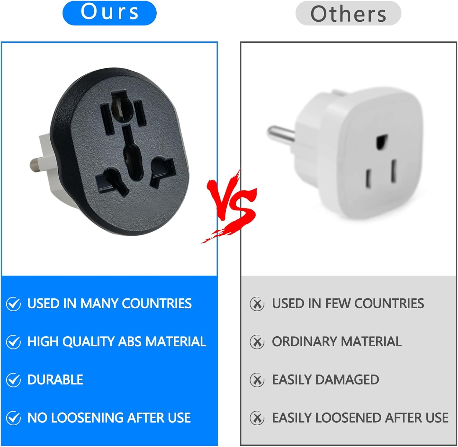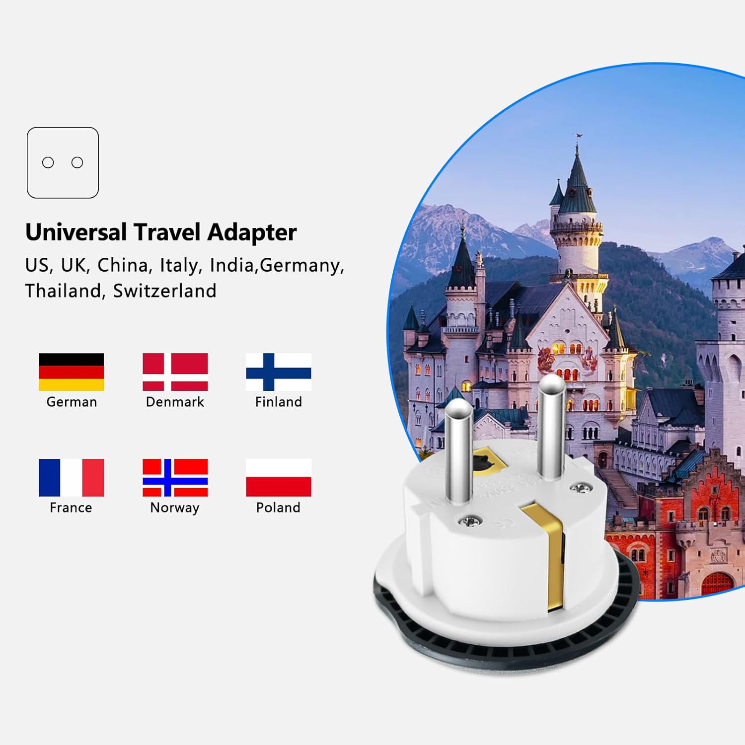 European Plug Adapter: Travel adapter fits plug adapter sockets (E/F type) in USA, UK, Germany, Thailand, Switzerland, China, Italy, India, etc. and can be connected to 2-pin EU sockets. (South Africa not supported)