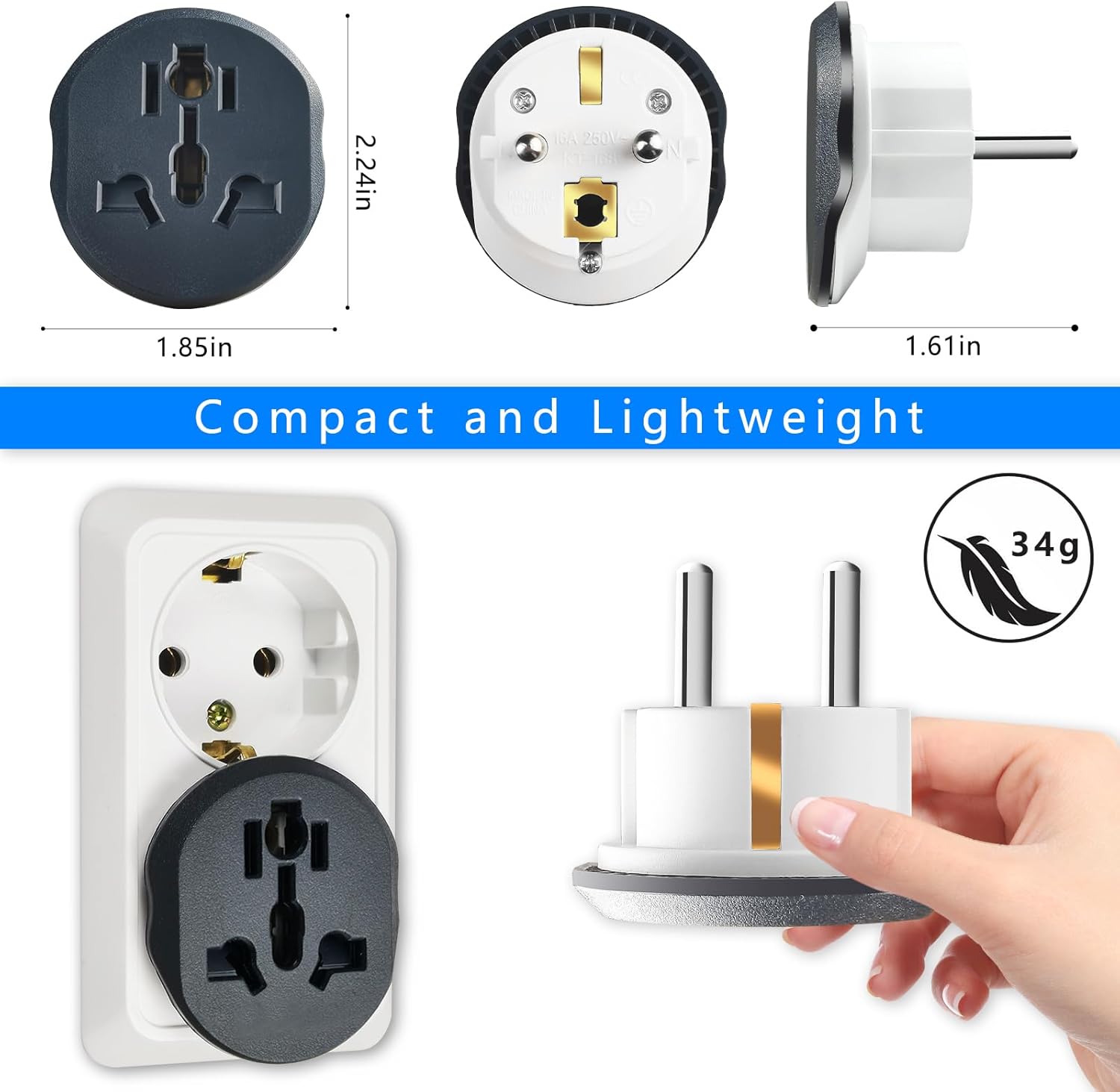 Lightweight and Compact,: The size of the adapter for europe plug is 1.9*2.1*1.9in, lightweight and compact, sturdy structure, easy to carry and store, our travel adapter is a must-have for your travel abroad.