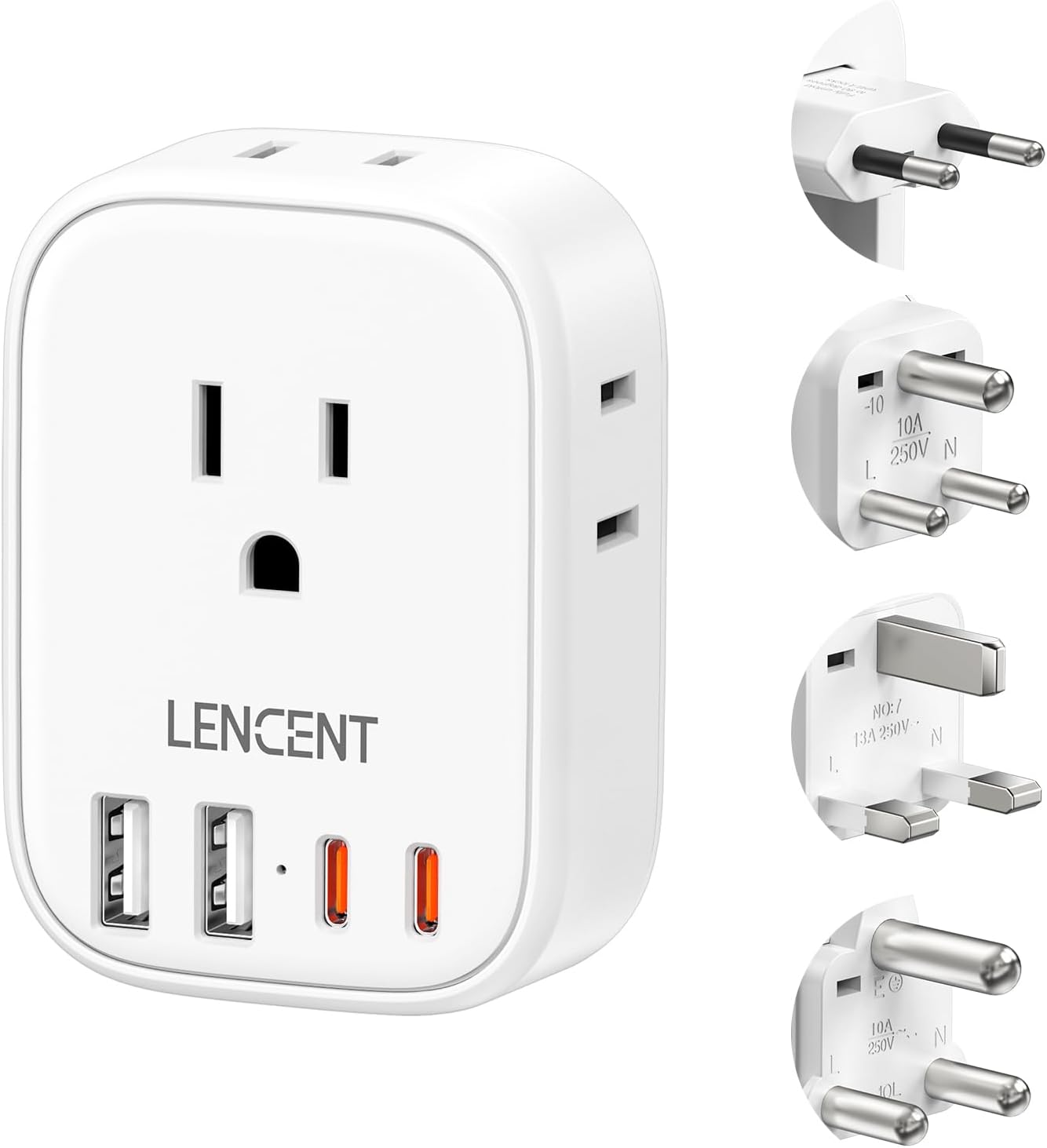 4 in 1 US to Europe Italy Plug Adapter: This European Travel Plug Adapter has 2 USB A (can charge up to 2.4A)and 1 USB C charging ports(can charge up to 3A), 1 AC Outlets max capacity up to 2500 watt (max 250 Volt, 10 A). Using advanced smart chips, it can charge 4 devices at the same time to achieve intelligent optimized charging. Perfect for mobile phones, iPads, laptops, cameras, power banks, and more